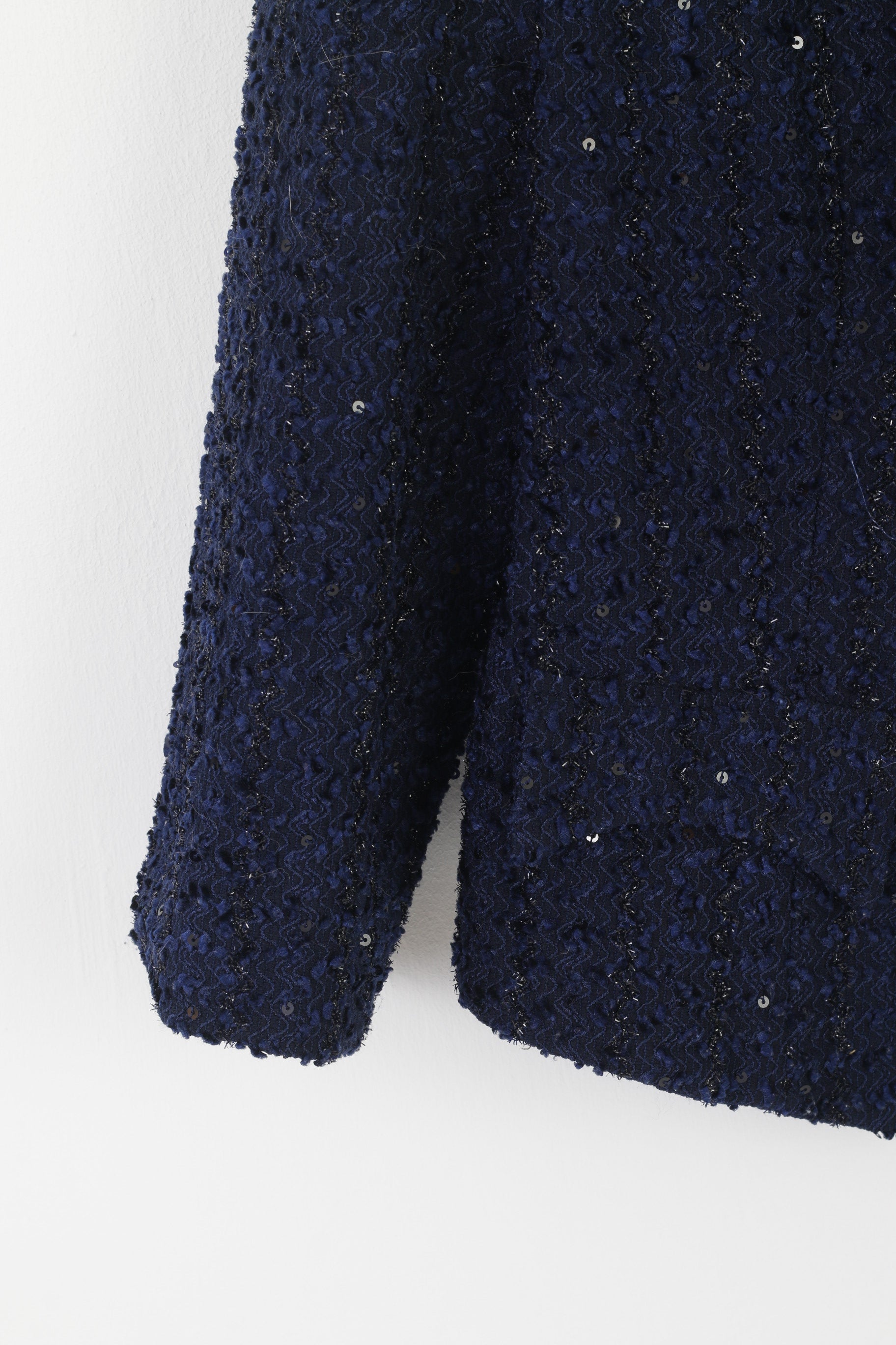 Zapara Women 16 L Blazer Blue Vintage Shiny Sequins Shoulder Pads Elegant Top -