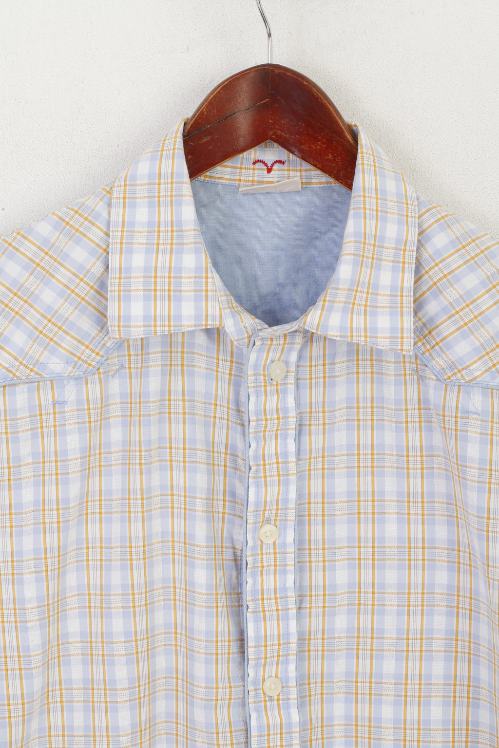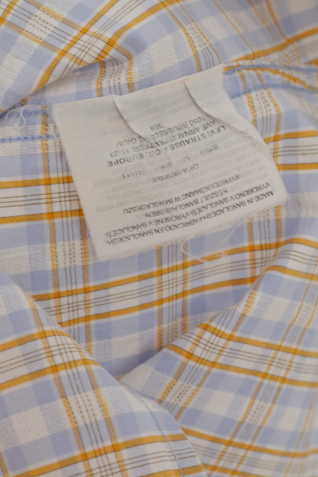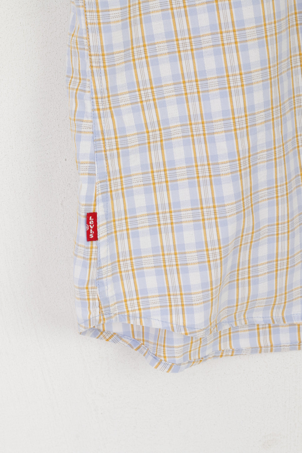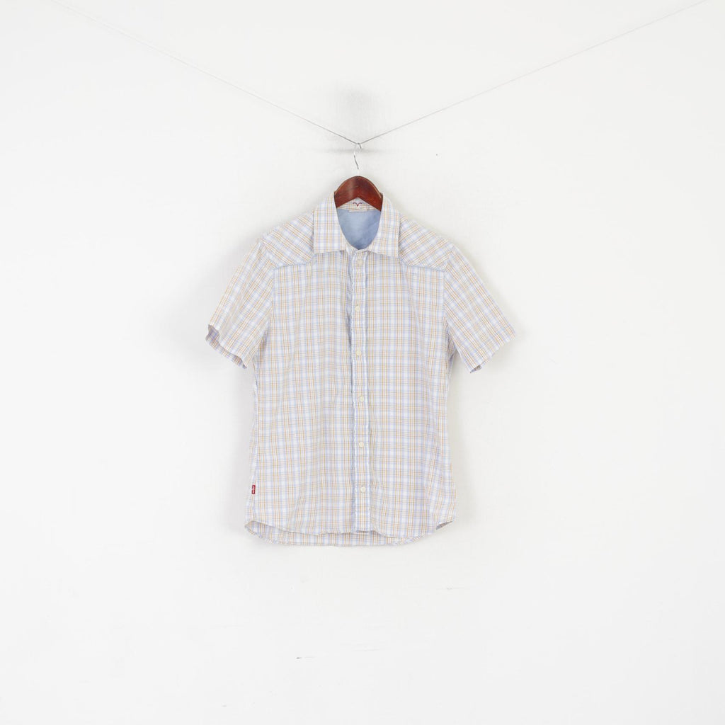 Levi's Men M Chemise décontractée Bleu à carreaux en coton Coupe ajustée à manches courtes