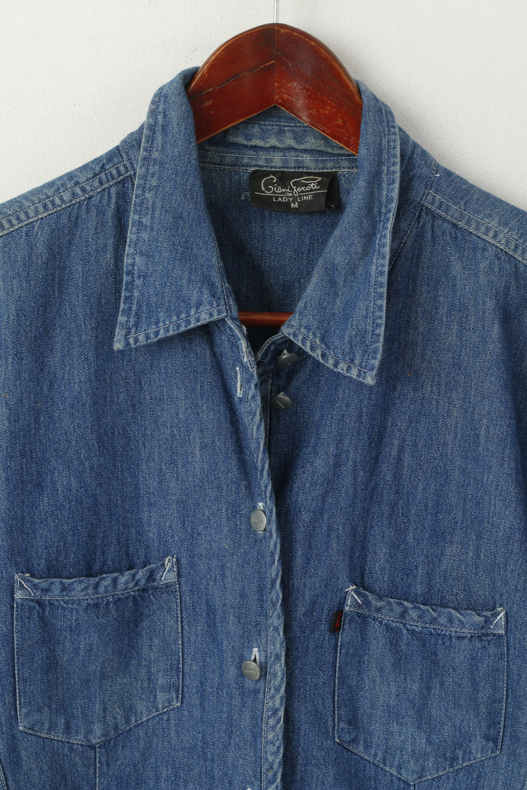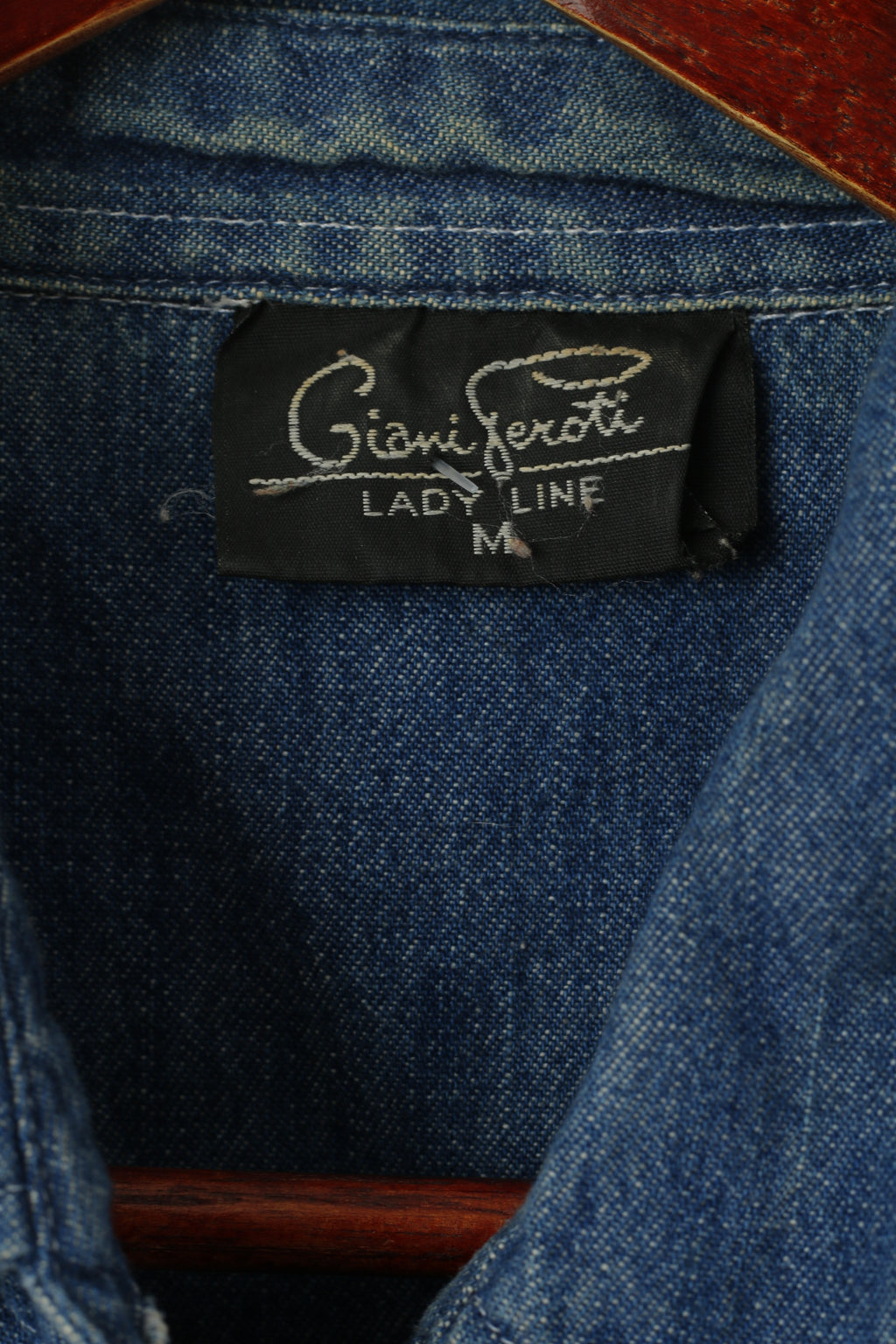 Giani Feroti Femmes M Chemise Décontractée Bleu Denim Coton Manches Longues Lady Line Top