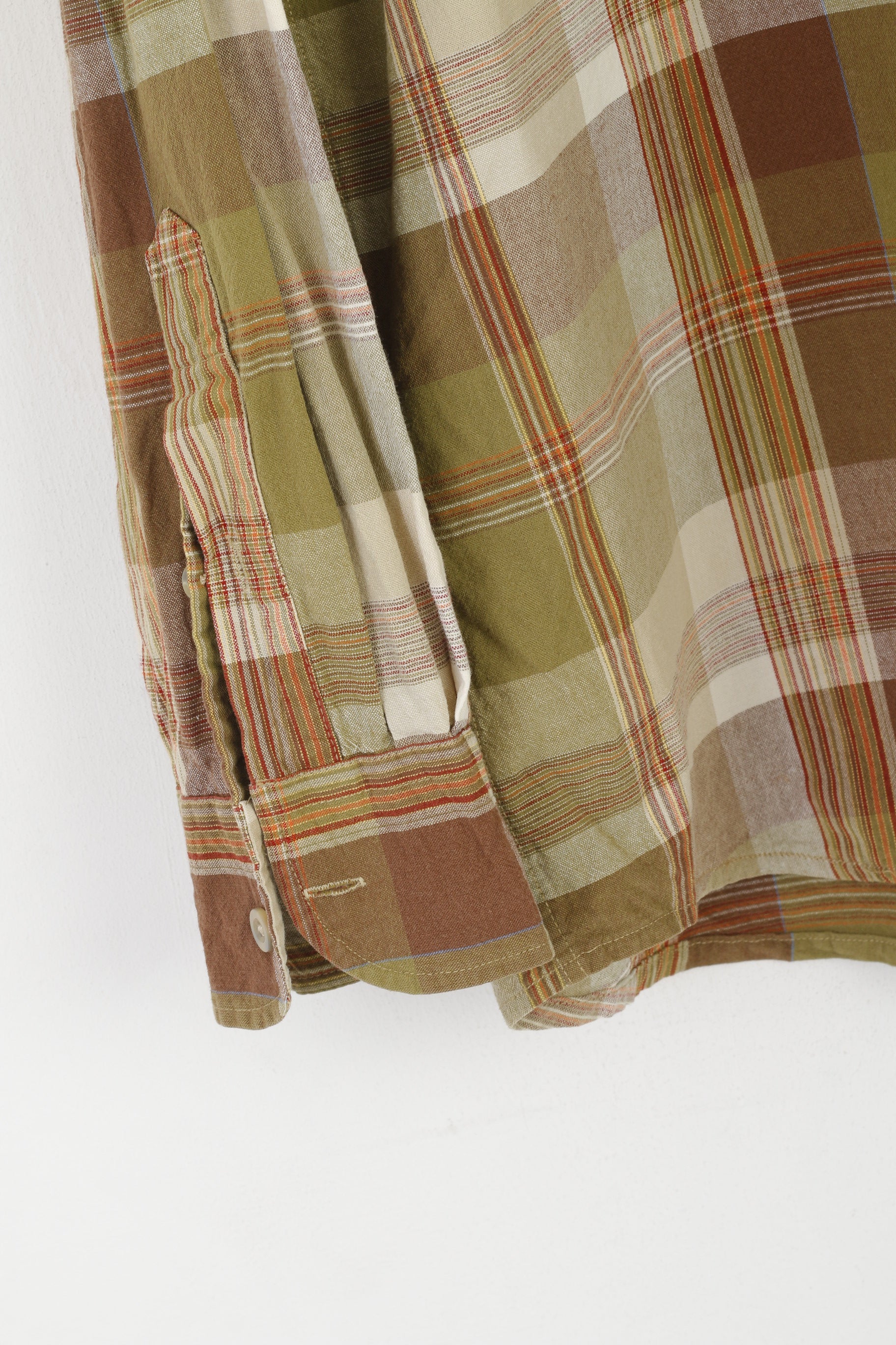 Freeman Sport Chemise décontractée XL pour homme Marron Vert à carreaux en coton à manches longues