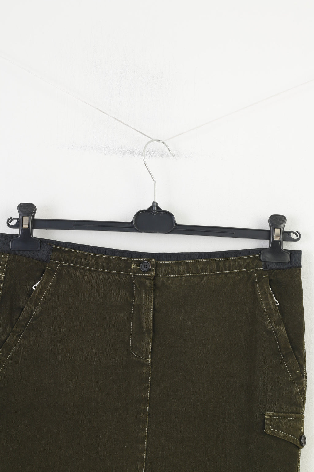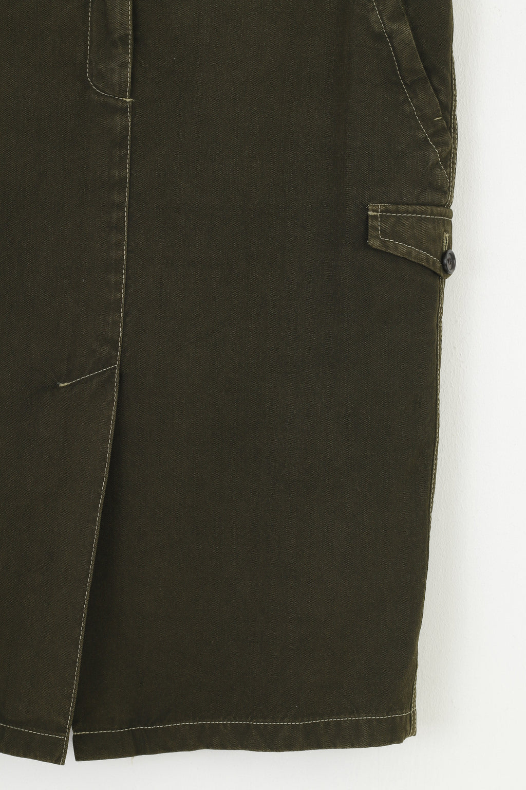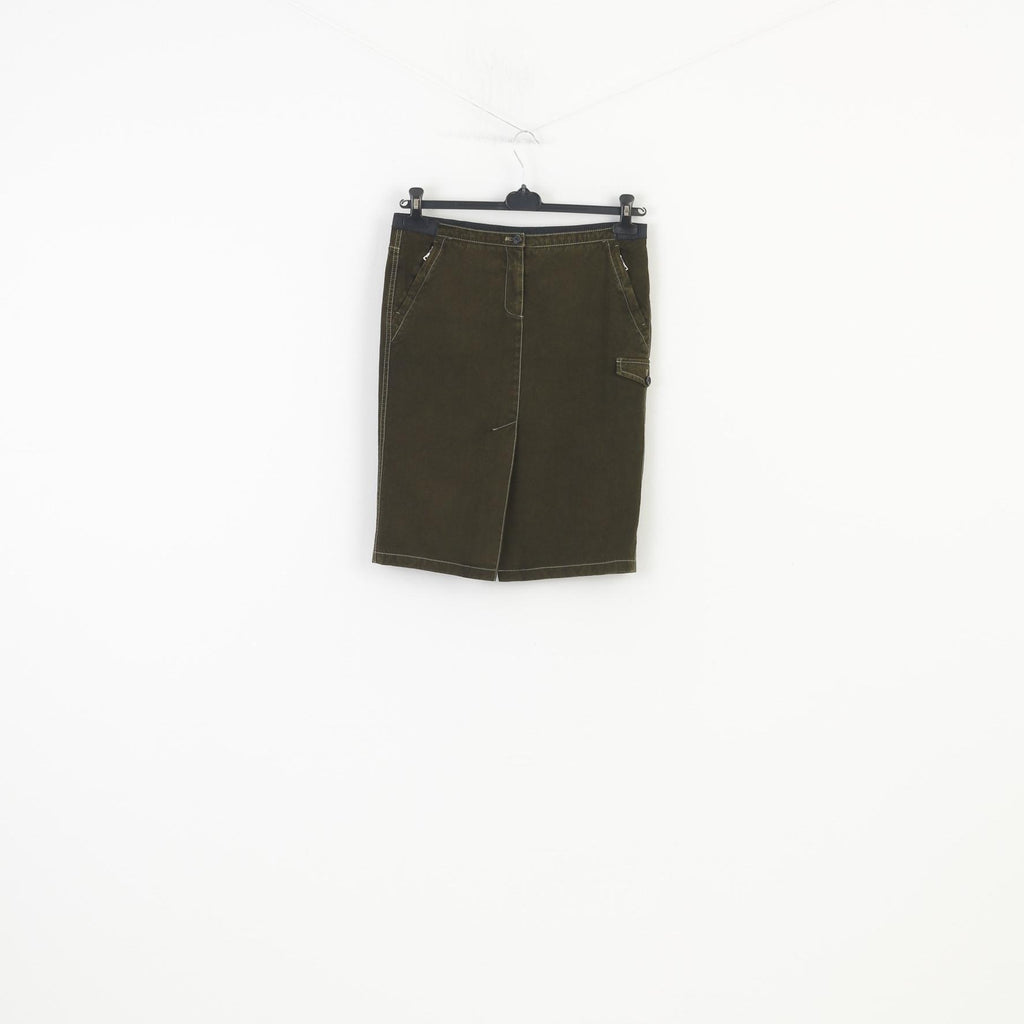 Prada Femme 42 L Jupe Kaki Zipper Midi Poches Laine vintage