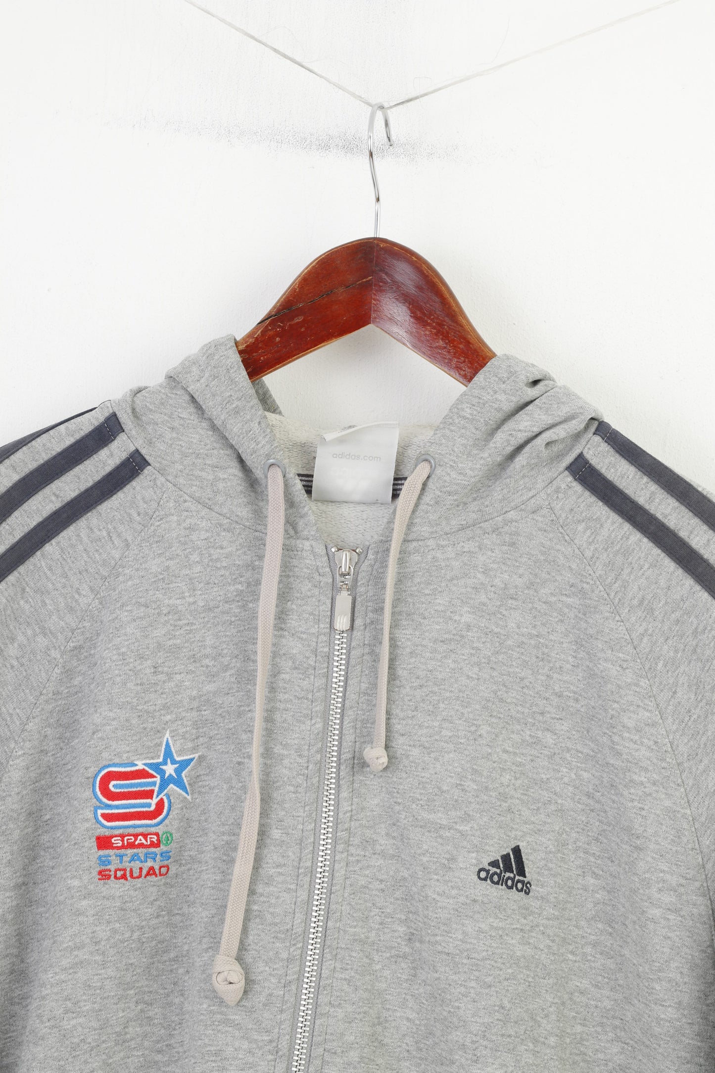 Felpa Adidas da uomo L in cotone grigio Spar Stars Squad con cappuccio e cerniera intera vintage