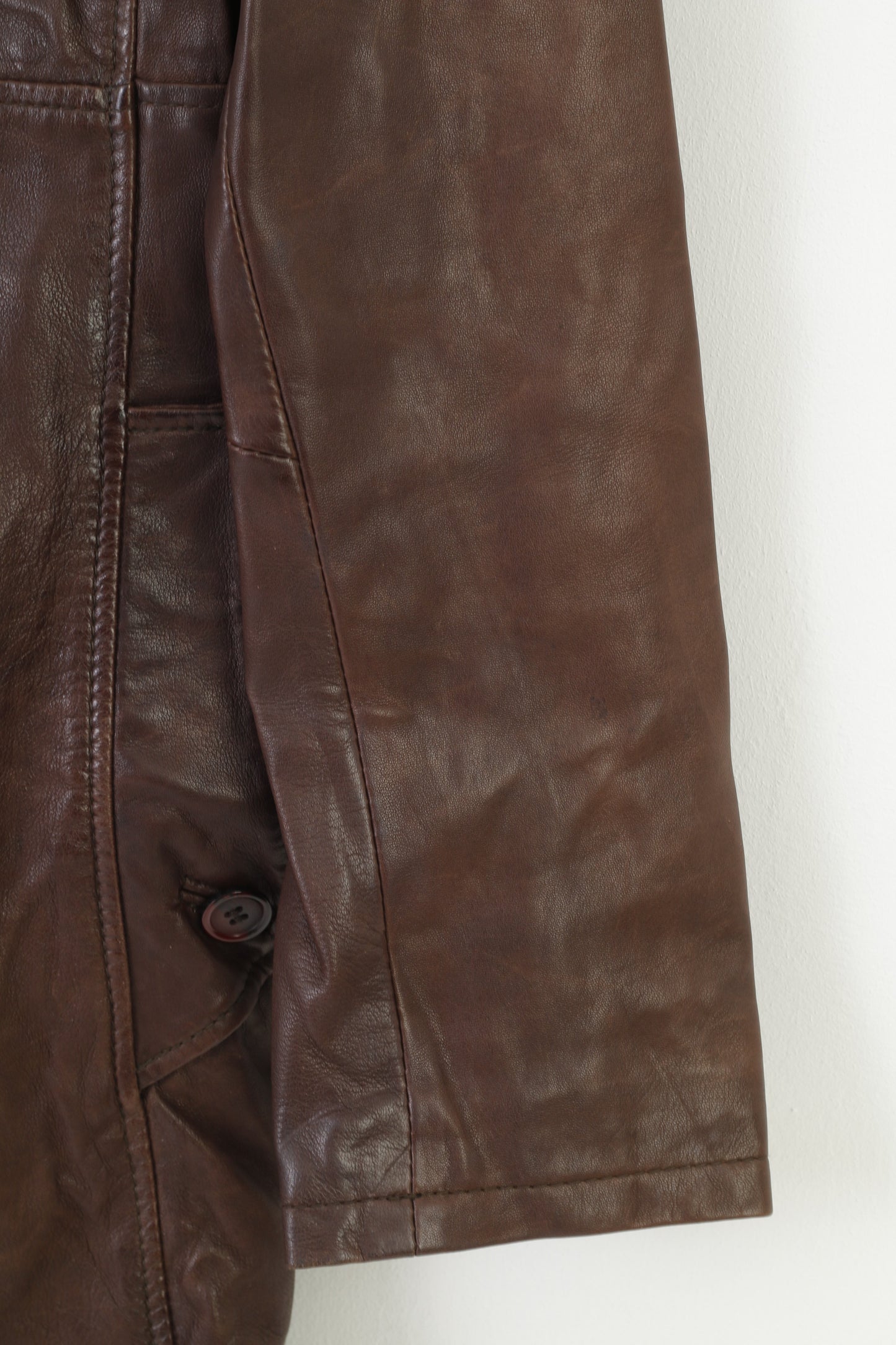 Cappotto Aleksander Of Norvegia da donna 40 M. Top con colletto vintage monopetto in pelle marrone scuro