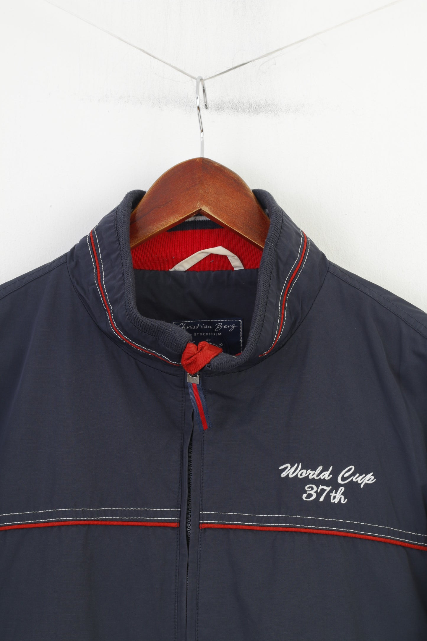 Christian Berg Giacca da uomo 40 M in nylon blu impermeabile leggero Coppa da vela con cerniera intera Top vintage