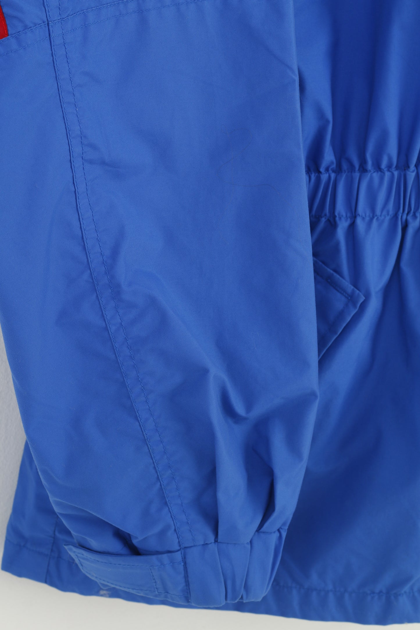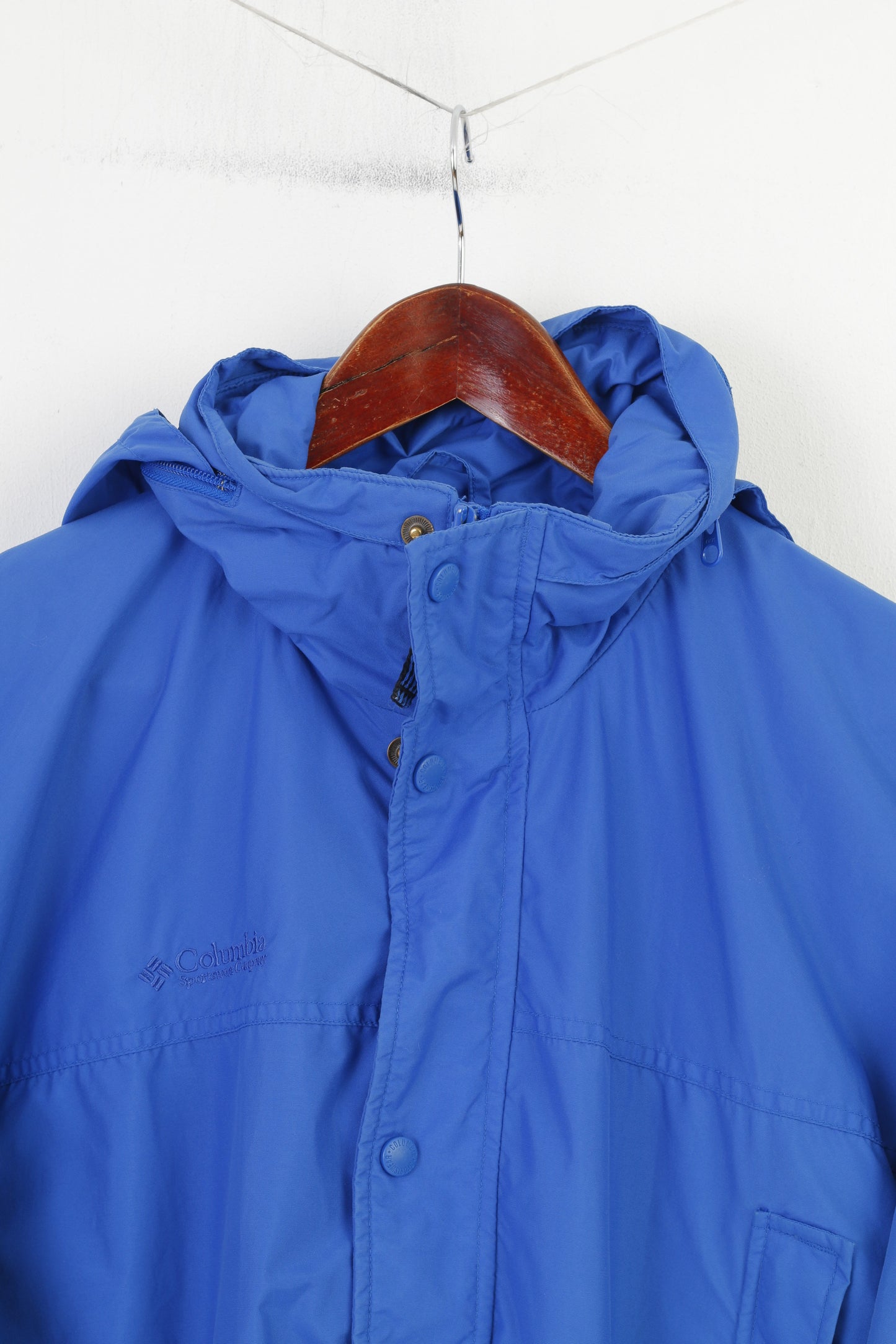 Columbia Giacca da uomo 164 L Parka Blu Nylon Impermeabile Cappuccio con cerniera intera Sportswear Company Tasche vintage Top