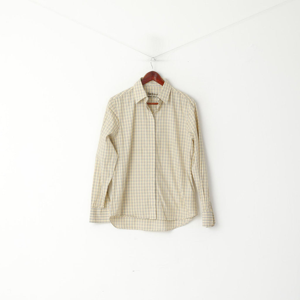 Barbour Donna 12 38 M Camicia casual Top in cotone Tattersall a maniche lunghe con motivo a quadri gialli