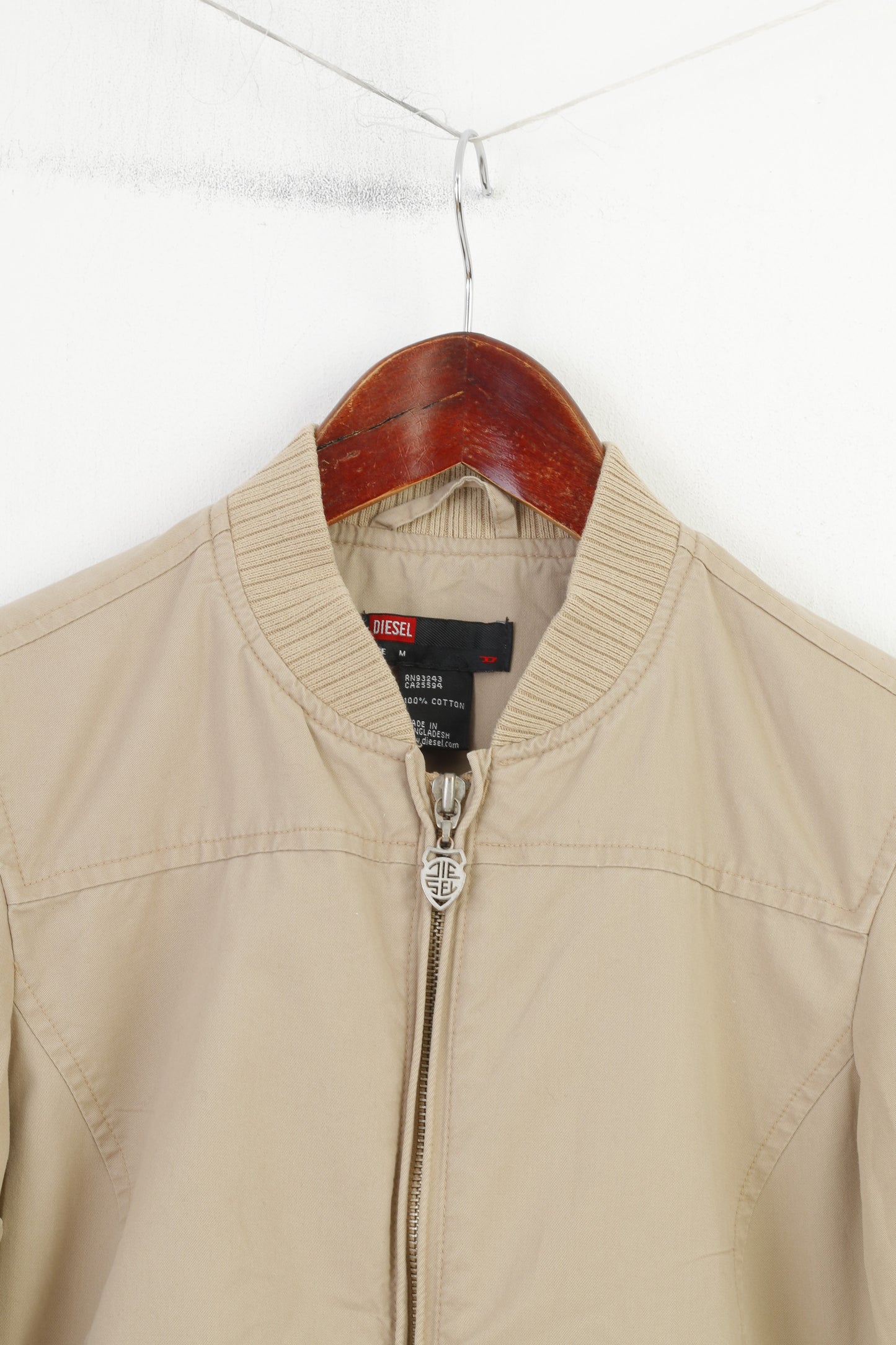 Diesel Giacca MS da donna in cotone beige con cerniera leggera Flourish Of Triumph Top ricamato