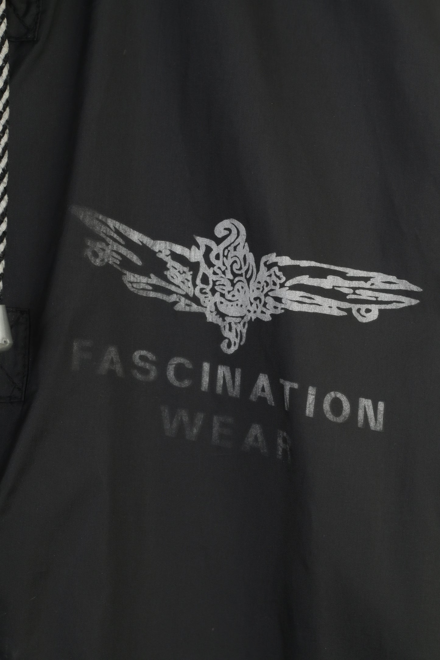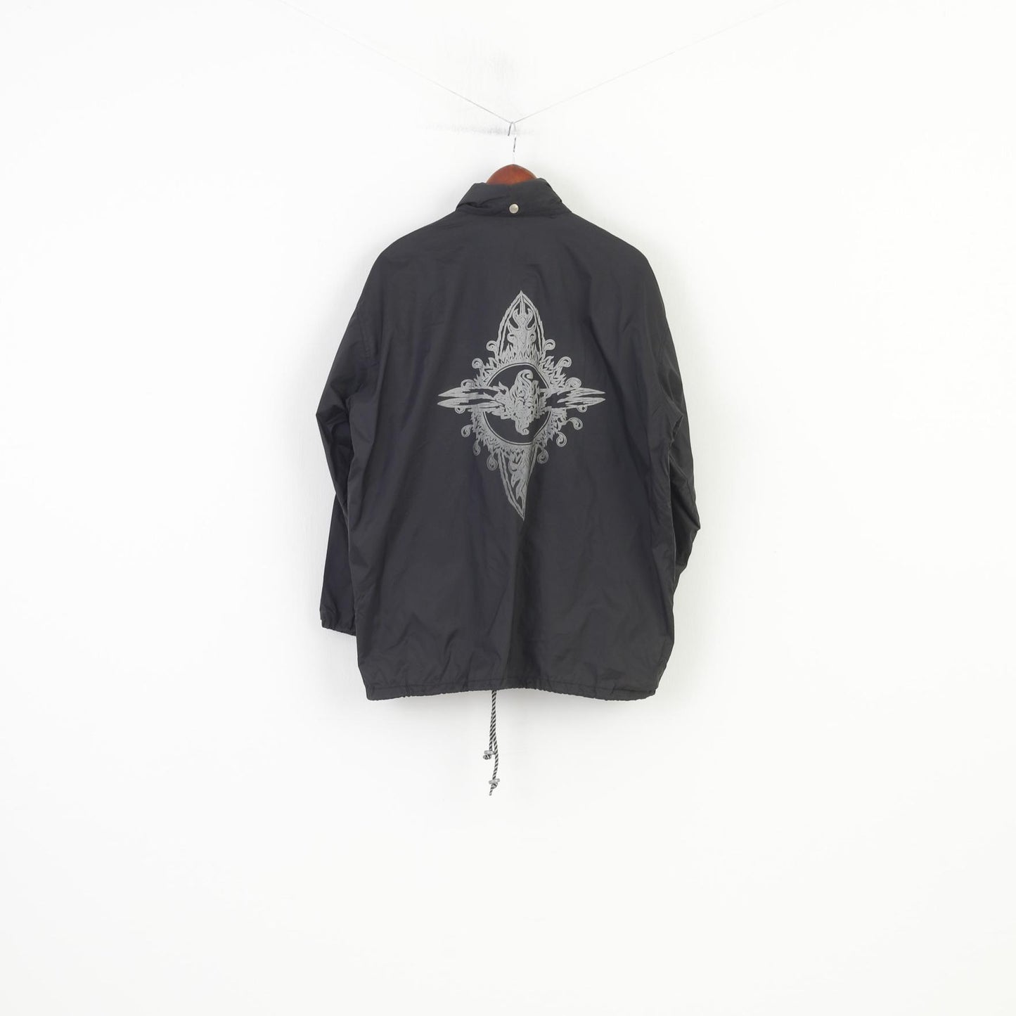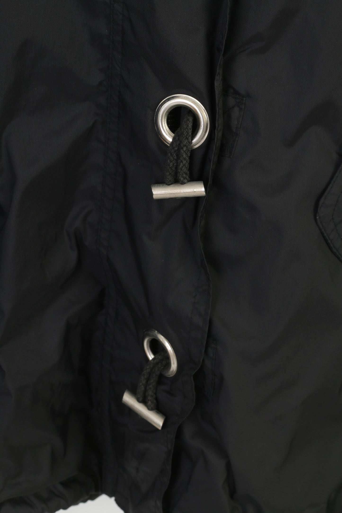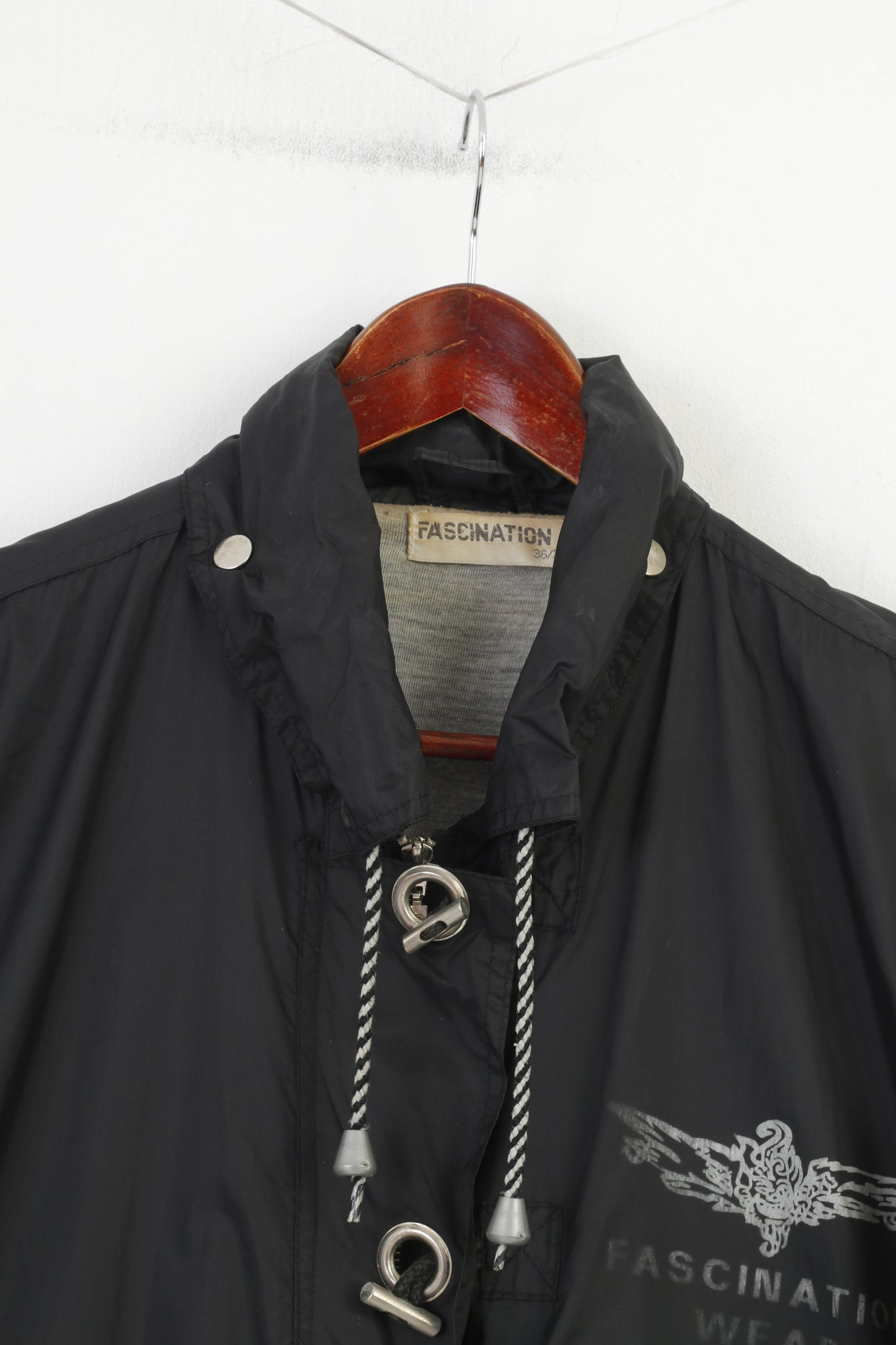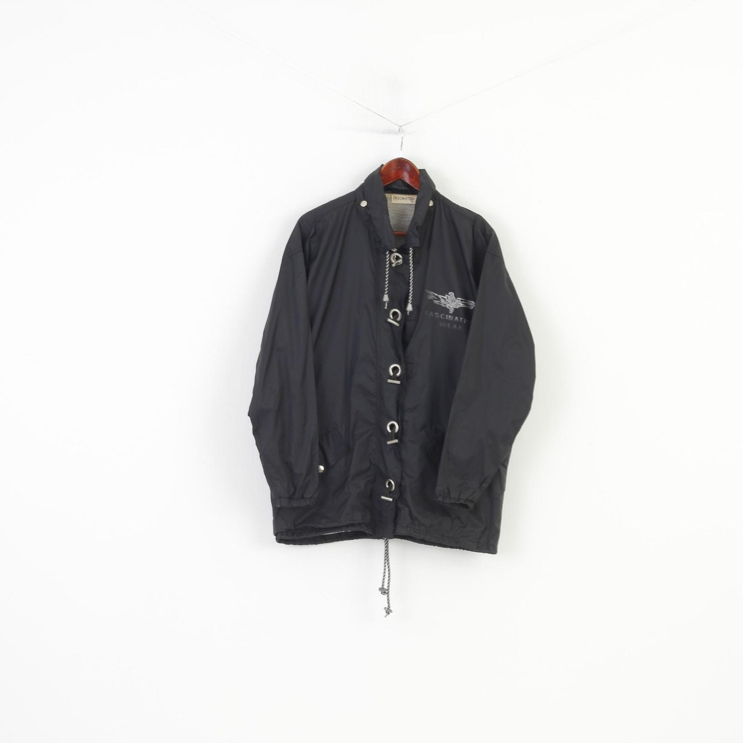 Fascination Women 36 38 XL Giacca nera con cappuccio in nylon impermeabile con cerniera intera vintage