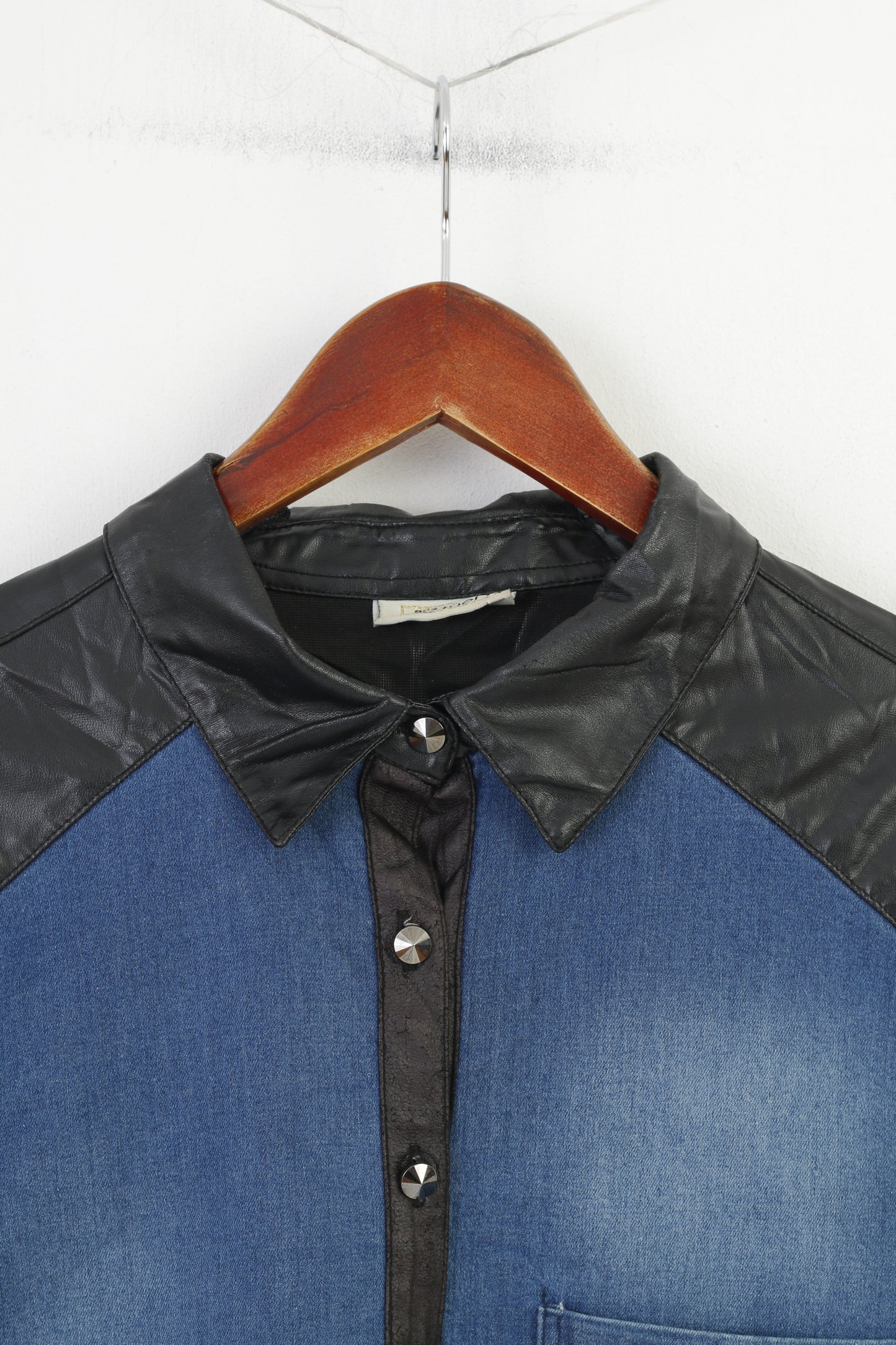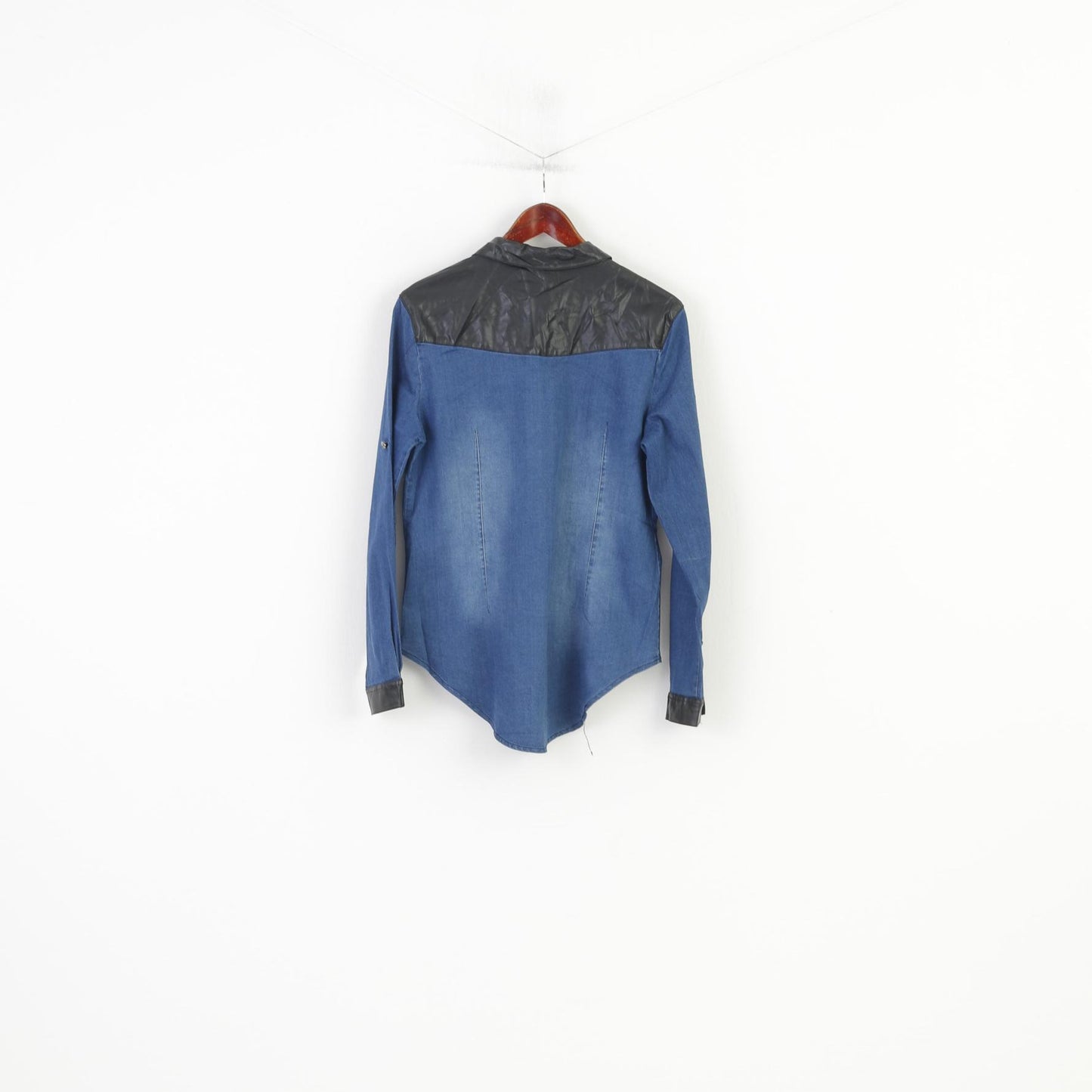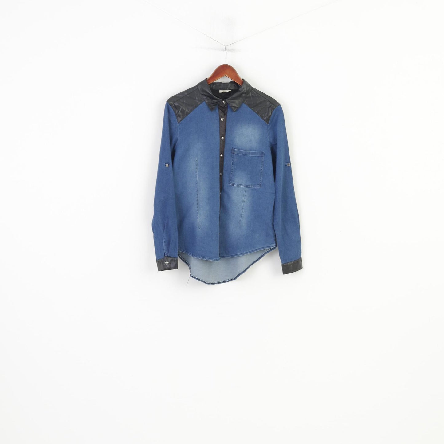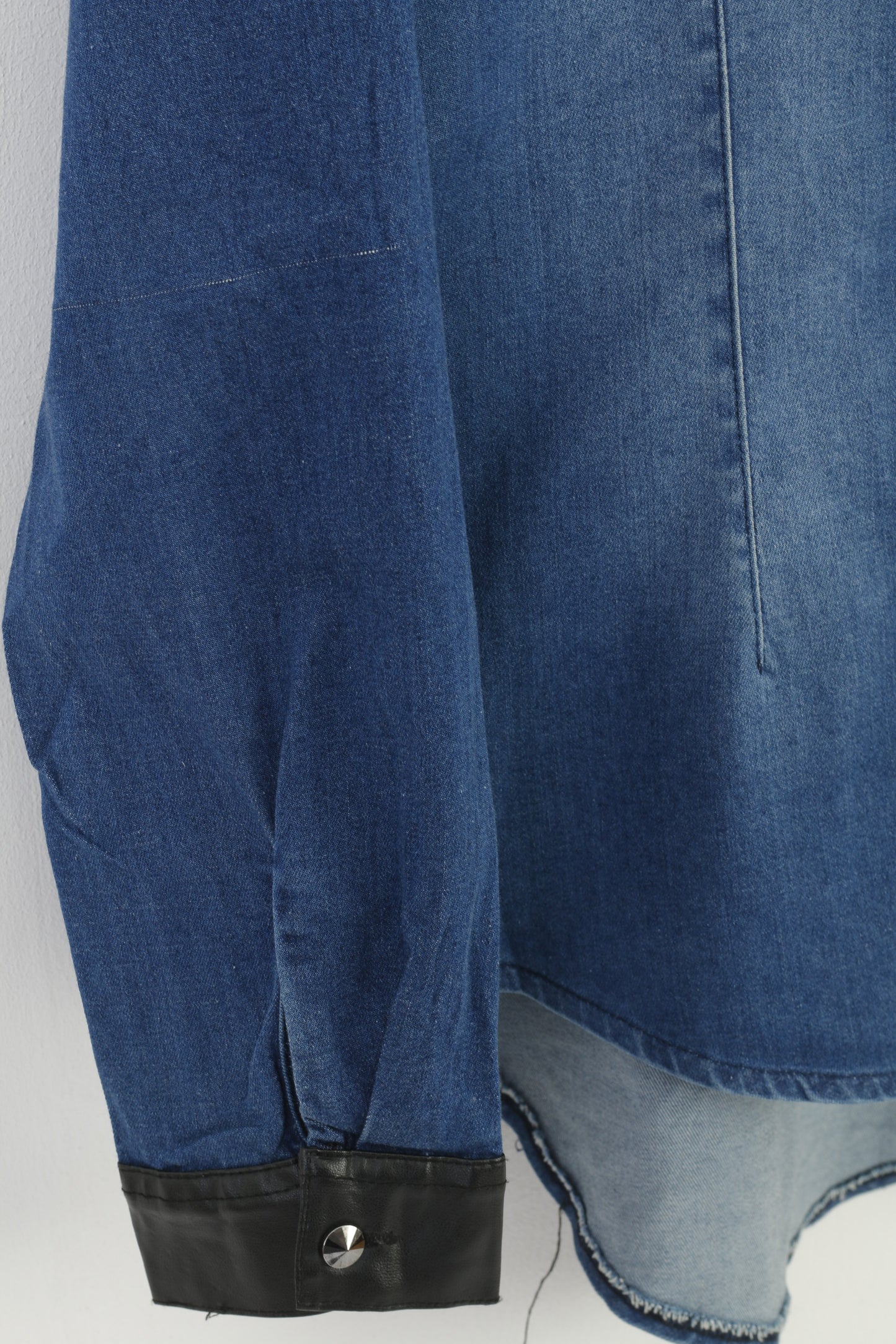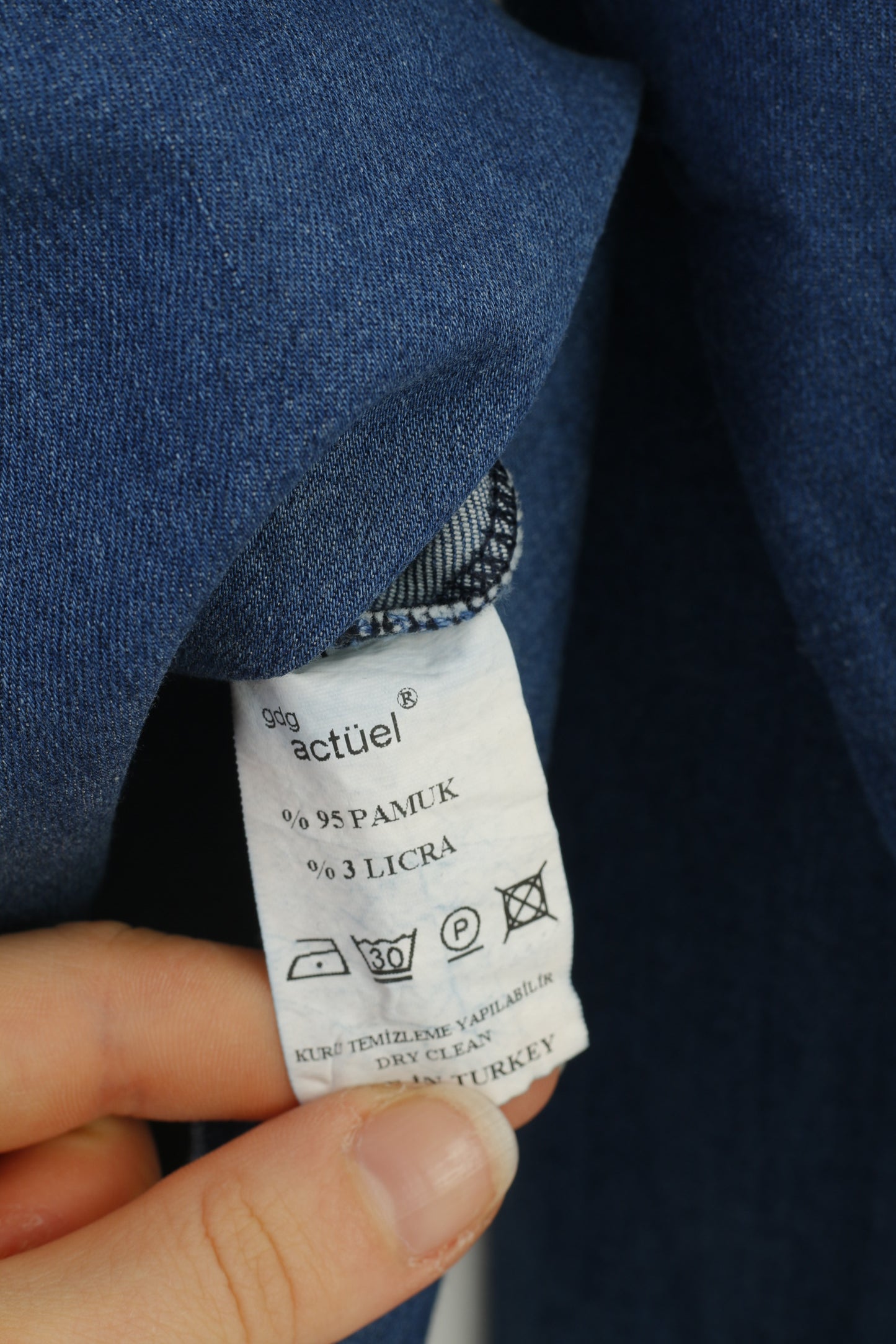 Gdg Actuel Camicia casual da donna 4 S Top a maniche lunghe vintage in misto cotone glam lycra blu