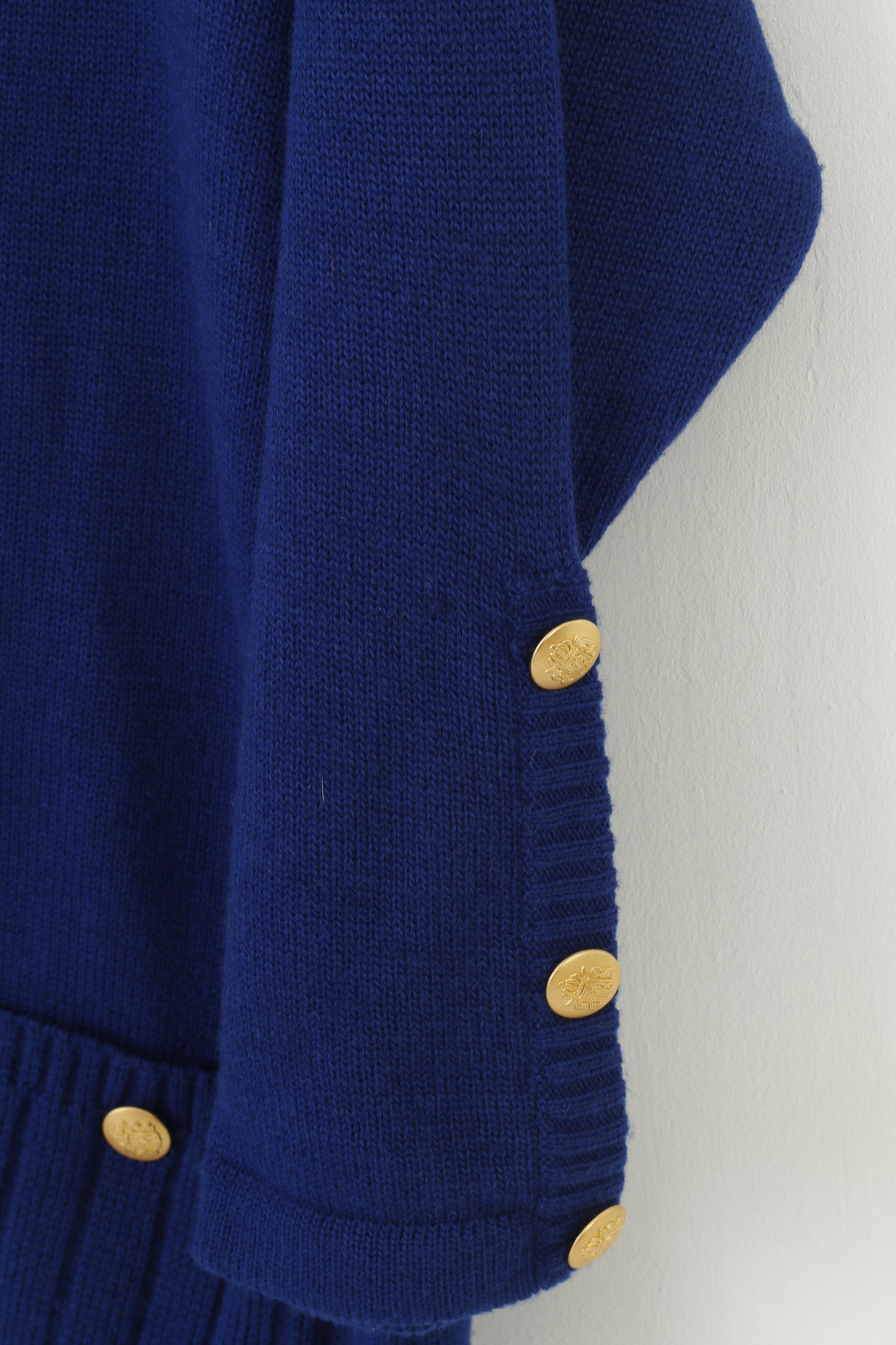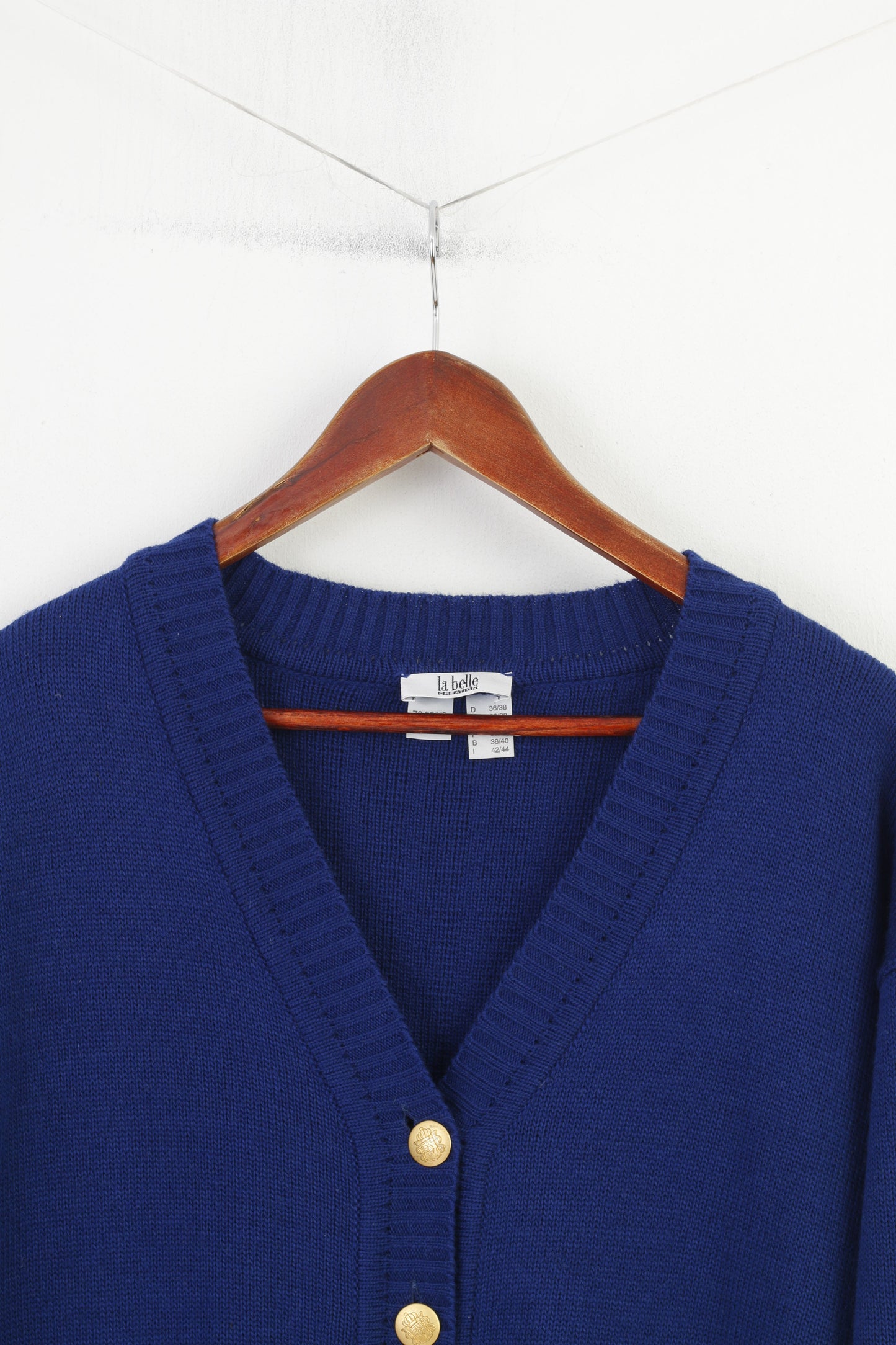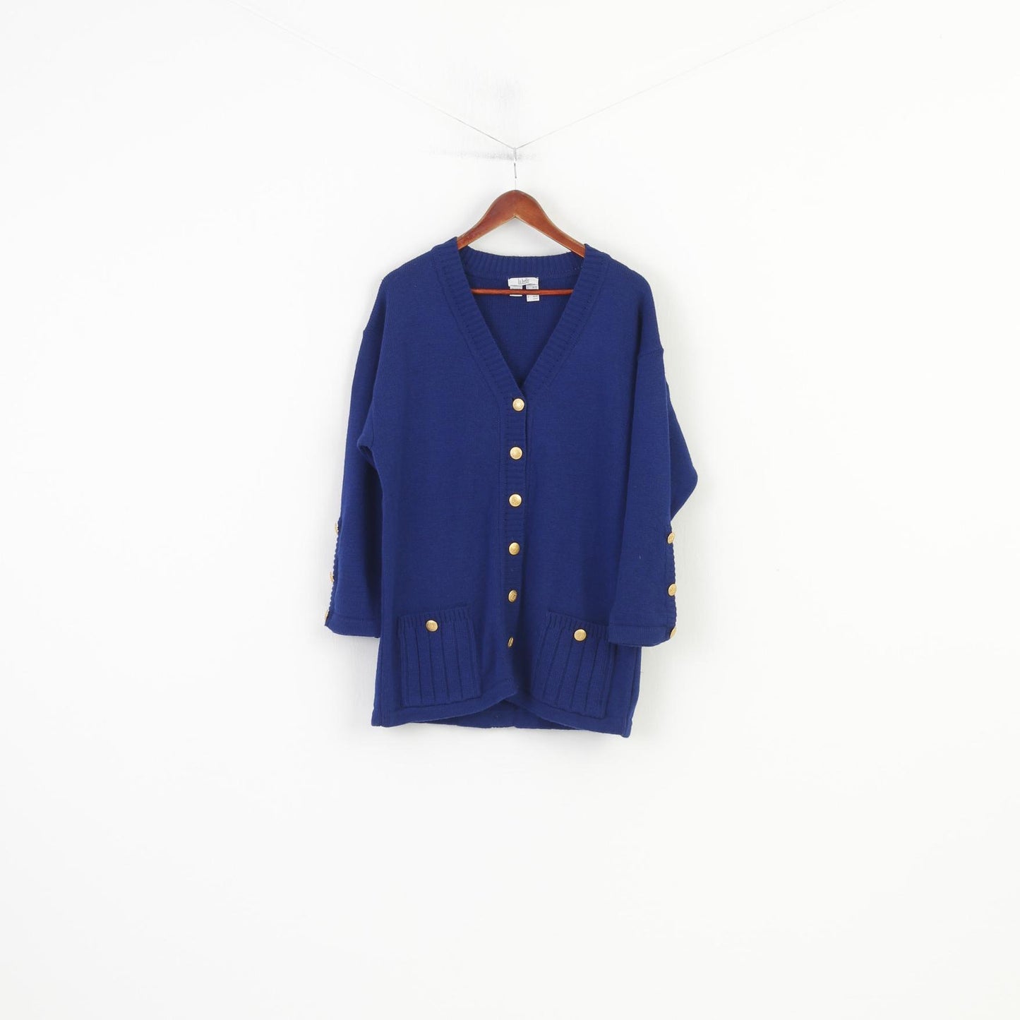 La Belle Donna 12 L Maglione Cardigan Blu Bottoni Oro Lana Italia Creazione Vintage Top