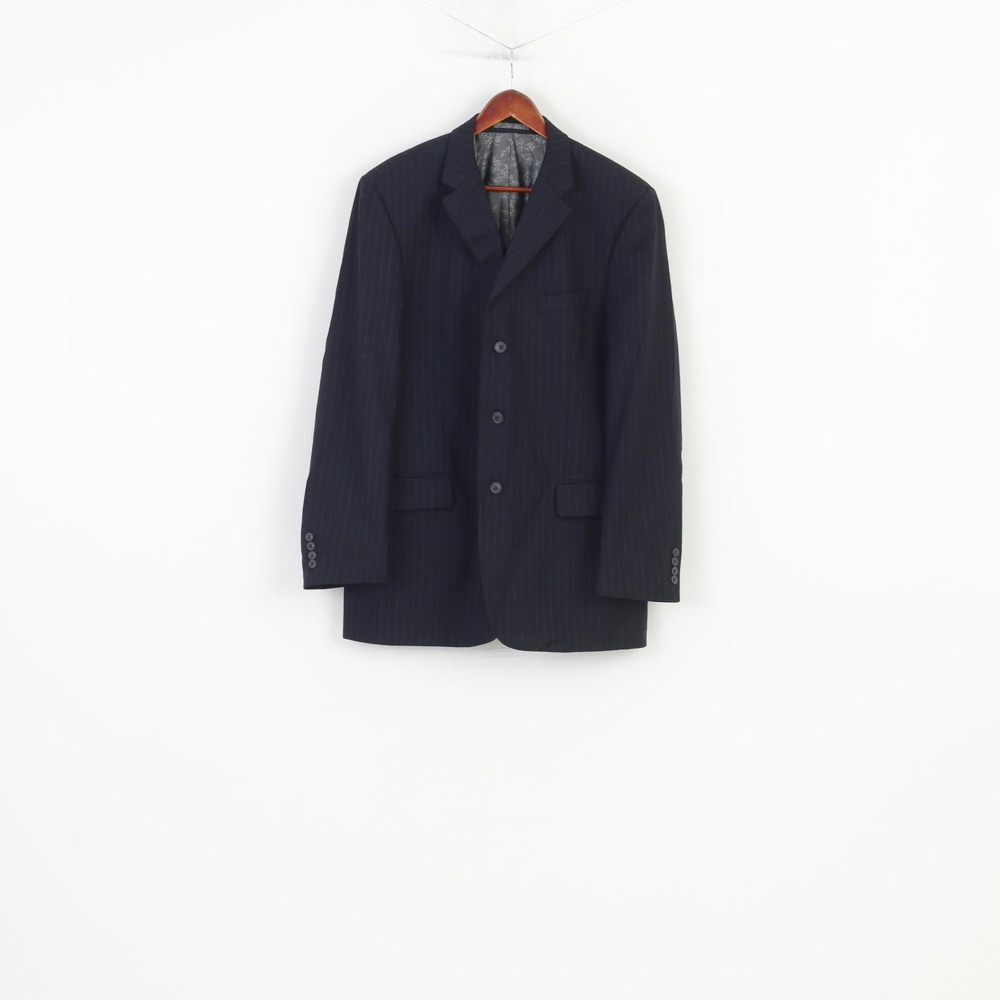 Pierre Cardin Uomo 44 54 Blazer Giacca monopetto vintage in lana a righe blu scuro