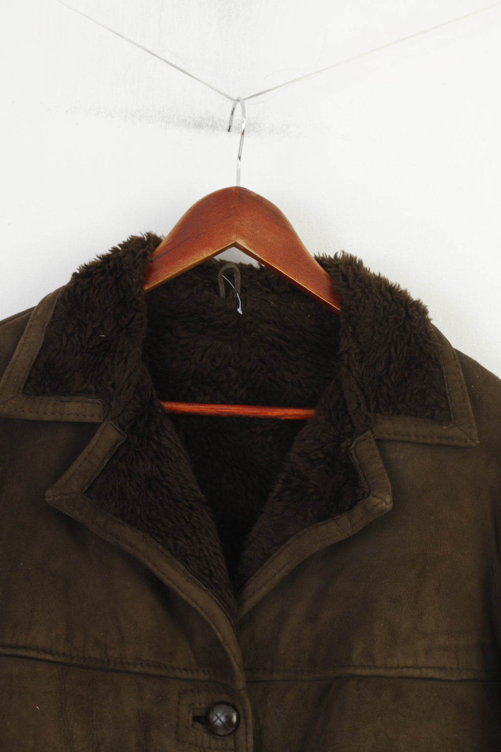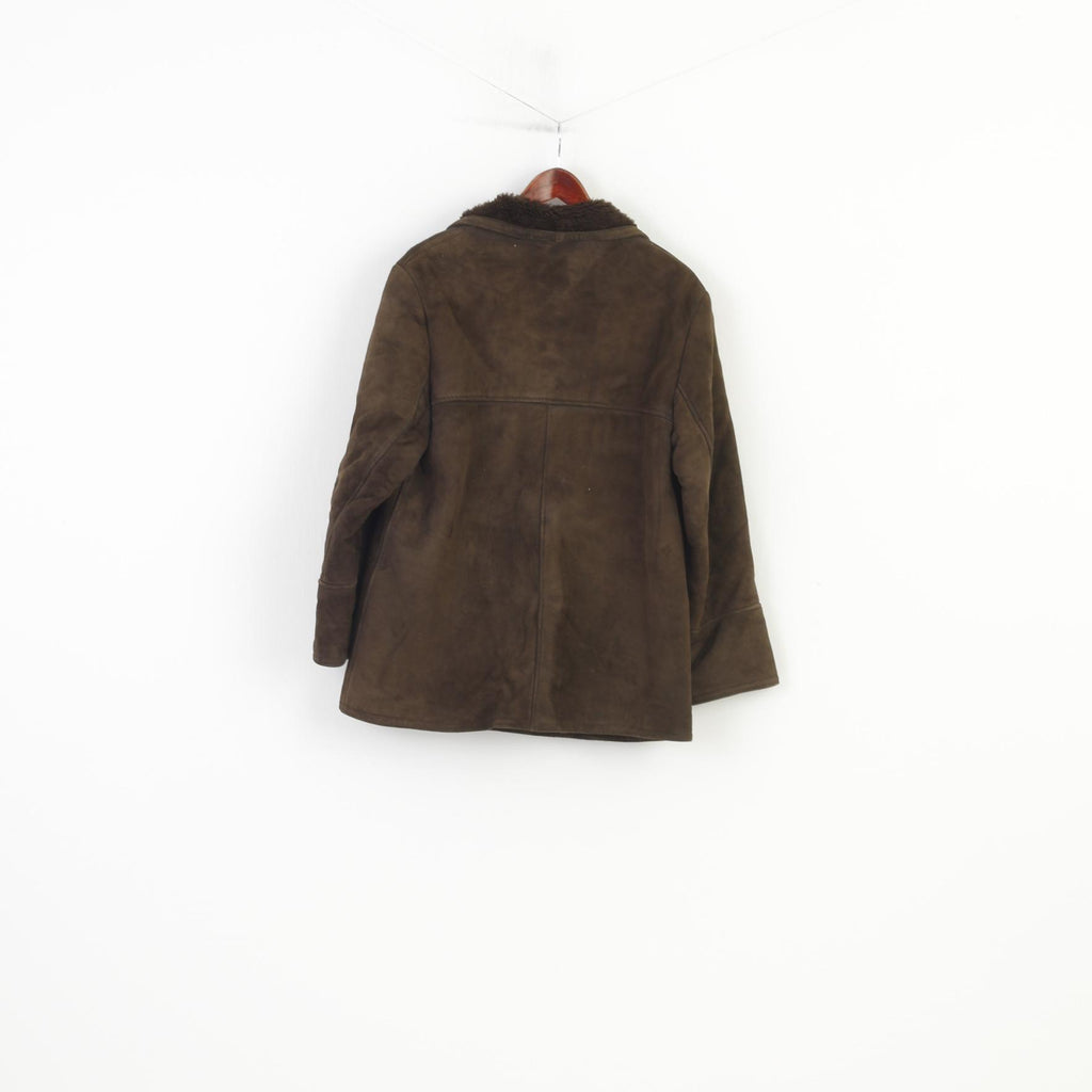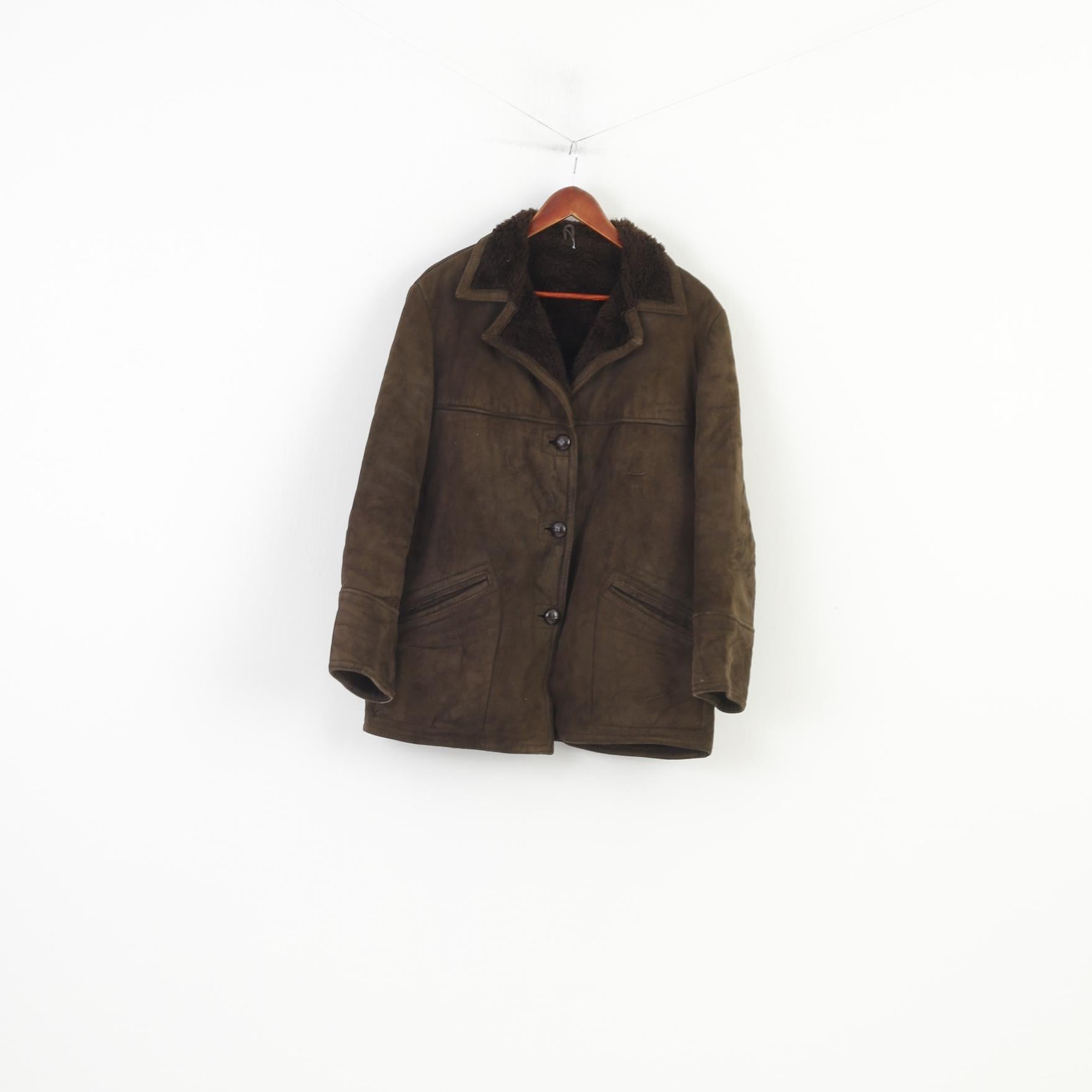 Giacca da donna in vera pelle scamosciata 16 XL Giacca monopetto marrone Fondo imbottito in pelliccia vintage