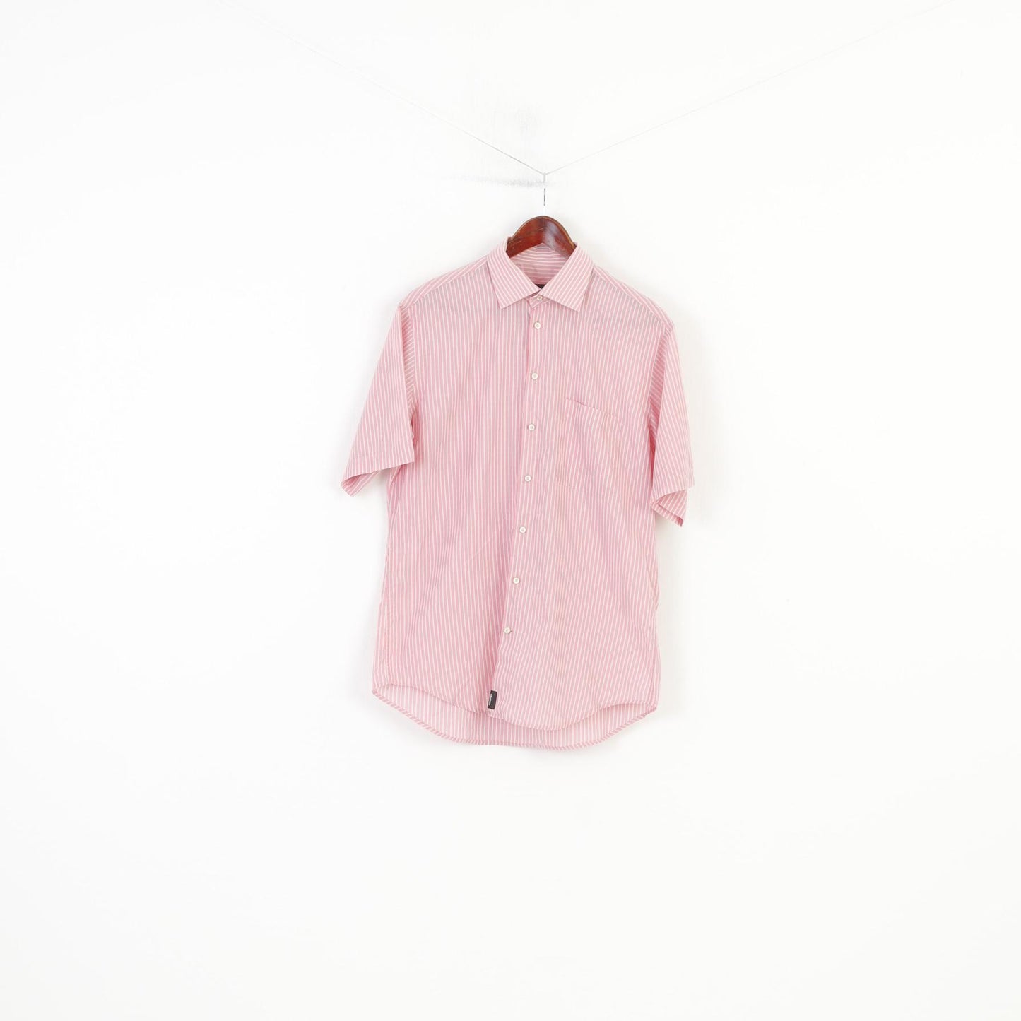 Strellson Uomo 40 15 3/4 Camicia casual Top a maniche corte in cotone a righe rosa
