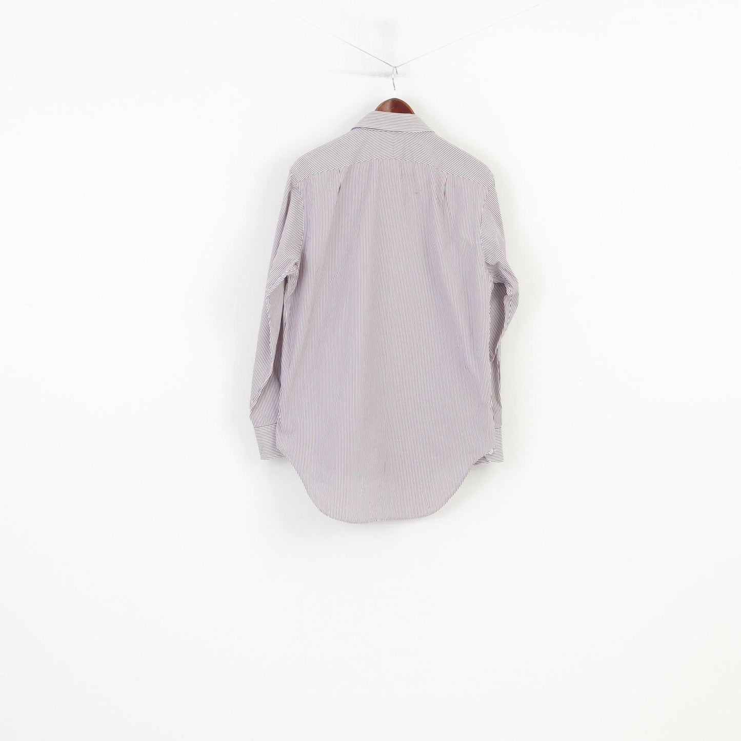 TM Lewin Uomo 16 35 L Camicia Casual Blu Rosso a Righe a Maniche Lunghe in Cotone Lewin 100 Fit Classico Top