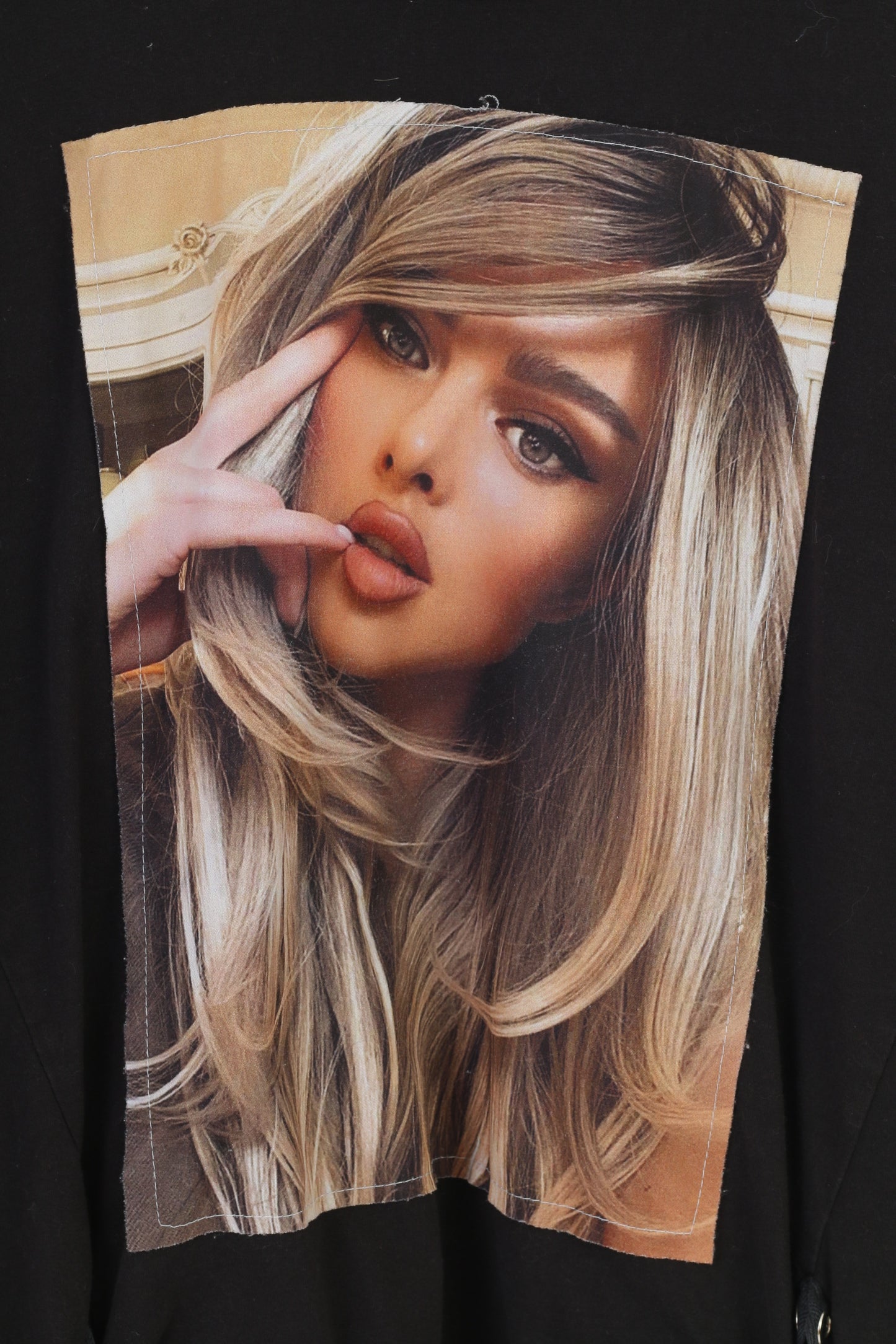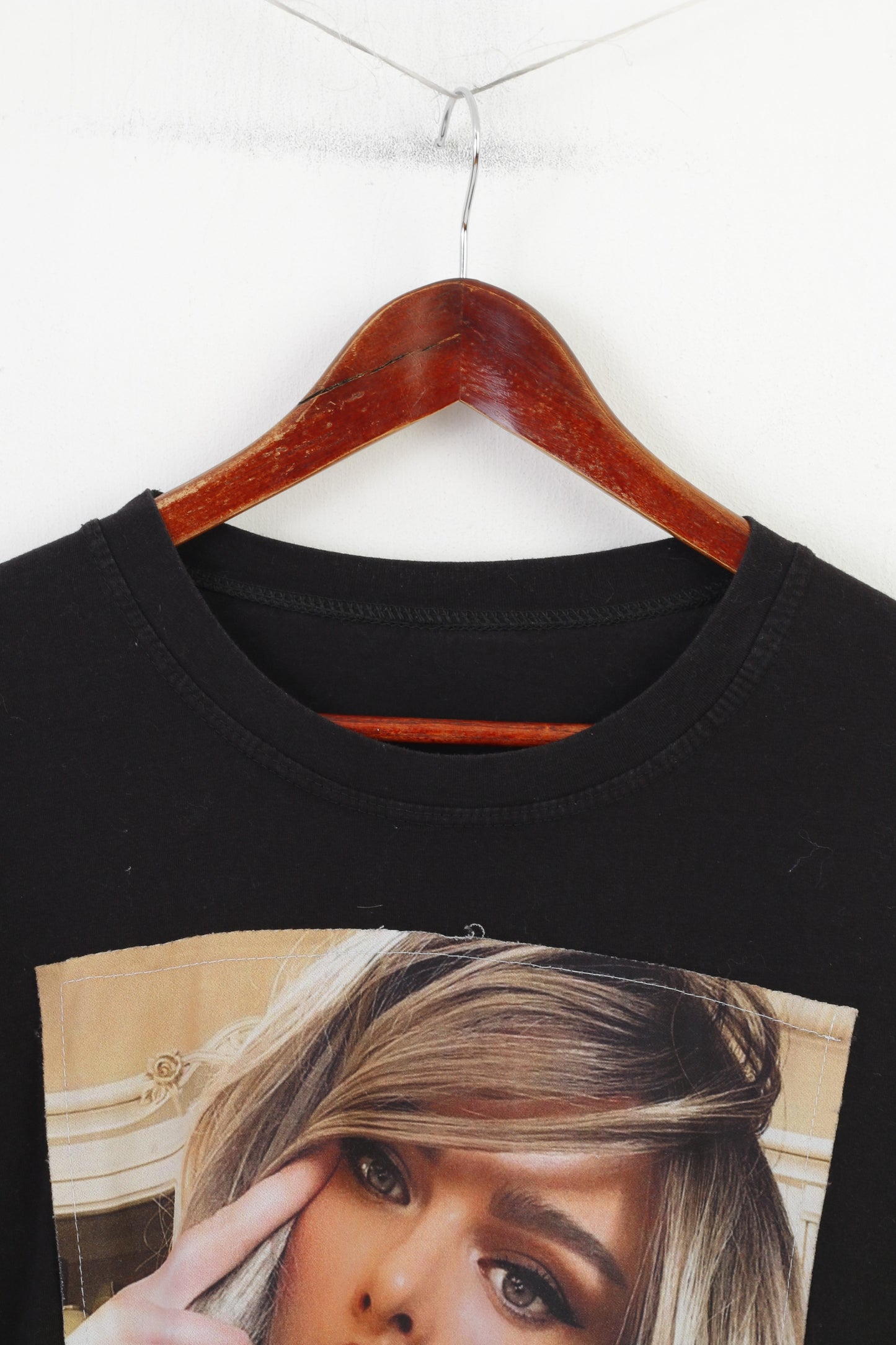 Maglietta vintage da donna a maniche lunghe, girocollo, grafica nera, top classico vintage in cotone