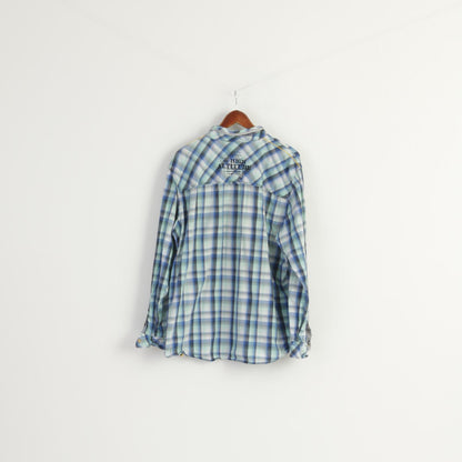 Camp David Men XXL Casual Shirt Blue Check Cotton Blue Label Regular Fit Long Sleeve Top