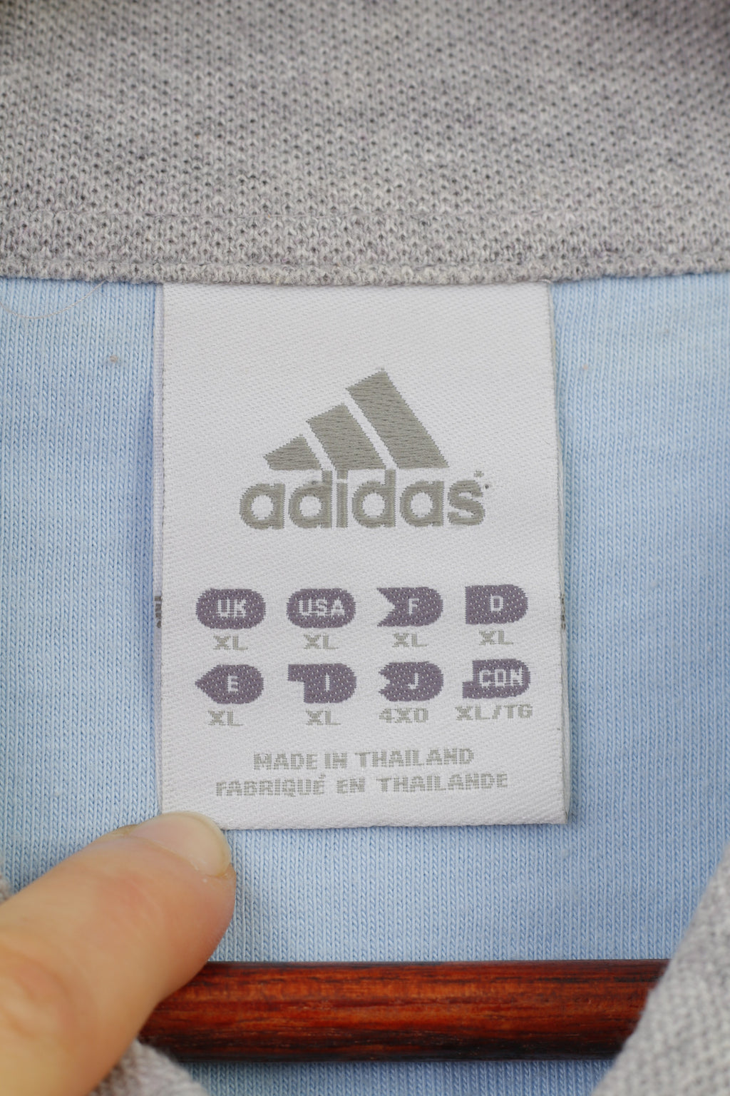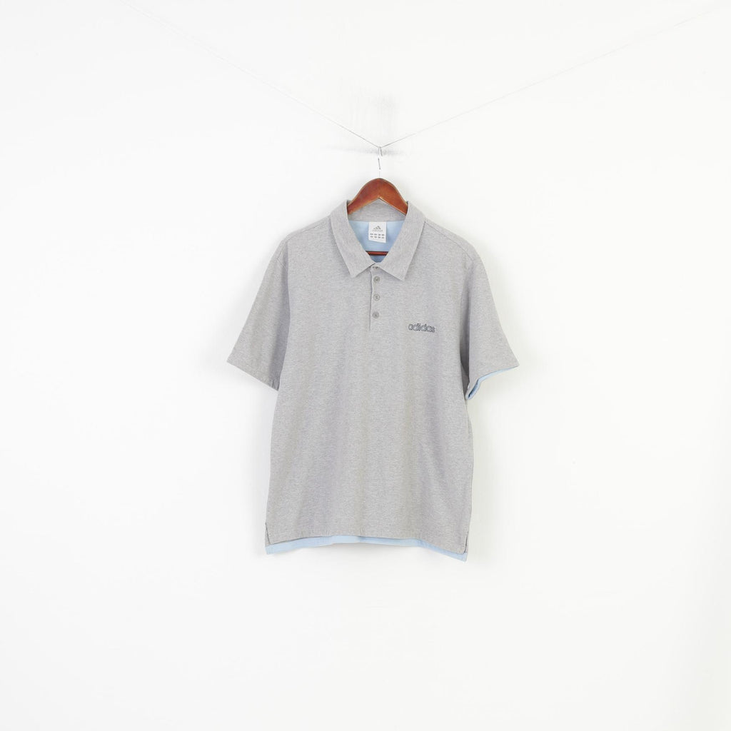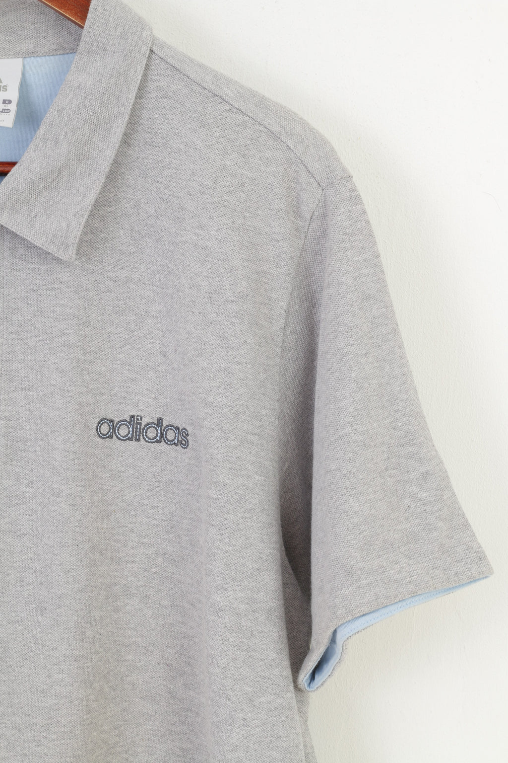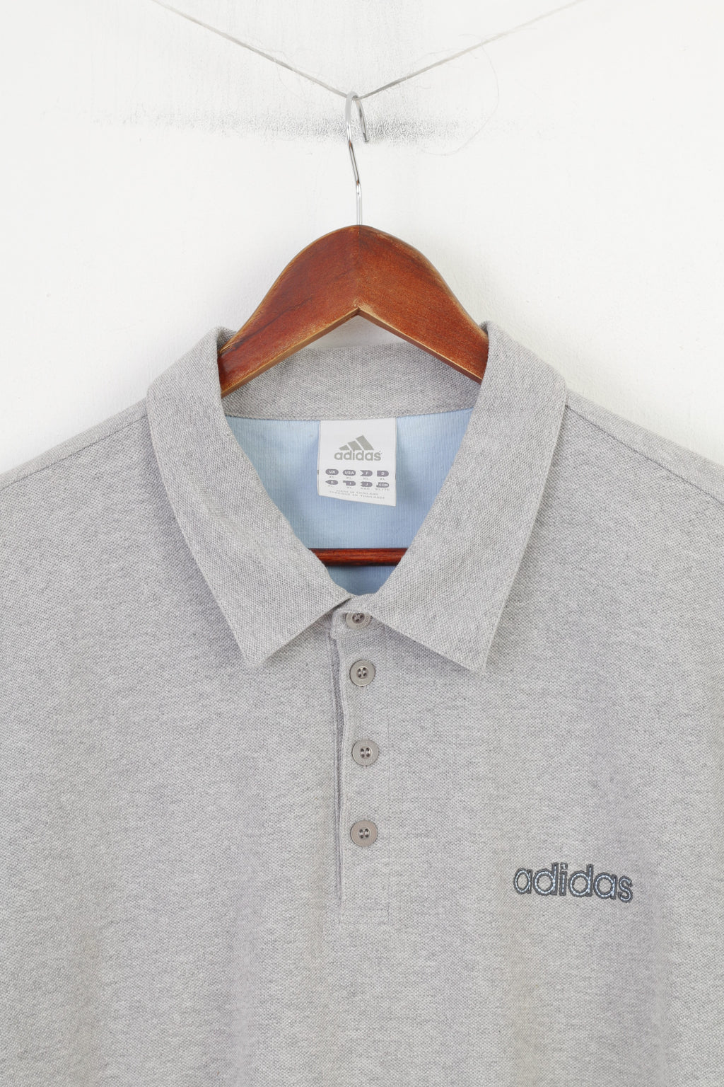Adidas Men XL Polo Shirt Grey Sport Short Sleeve Cotton Vintage Top
