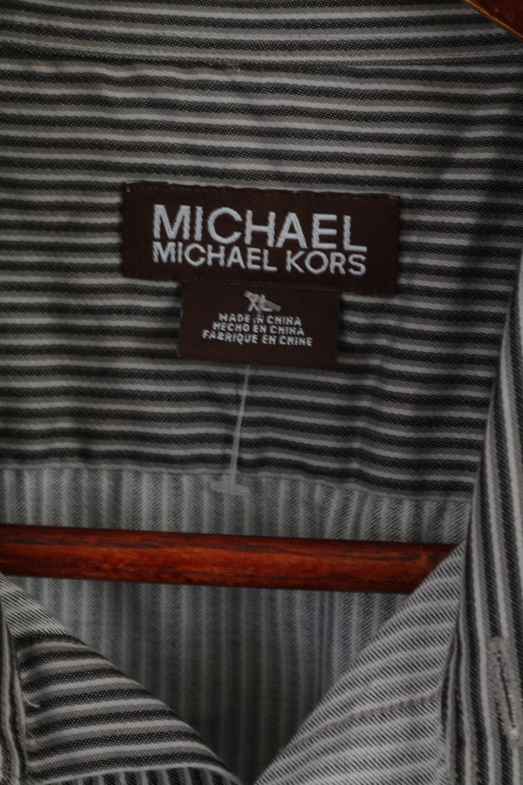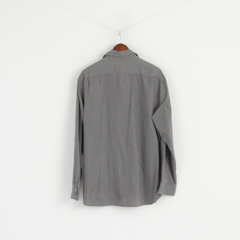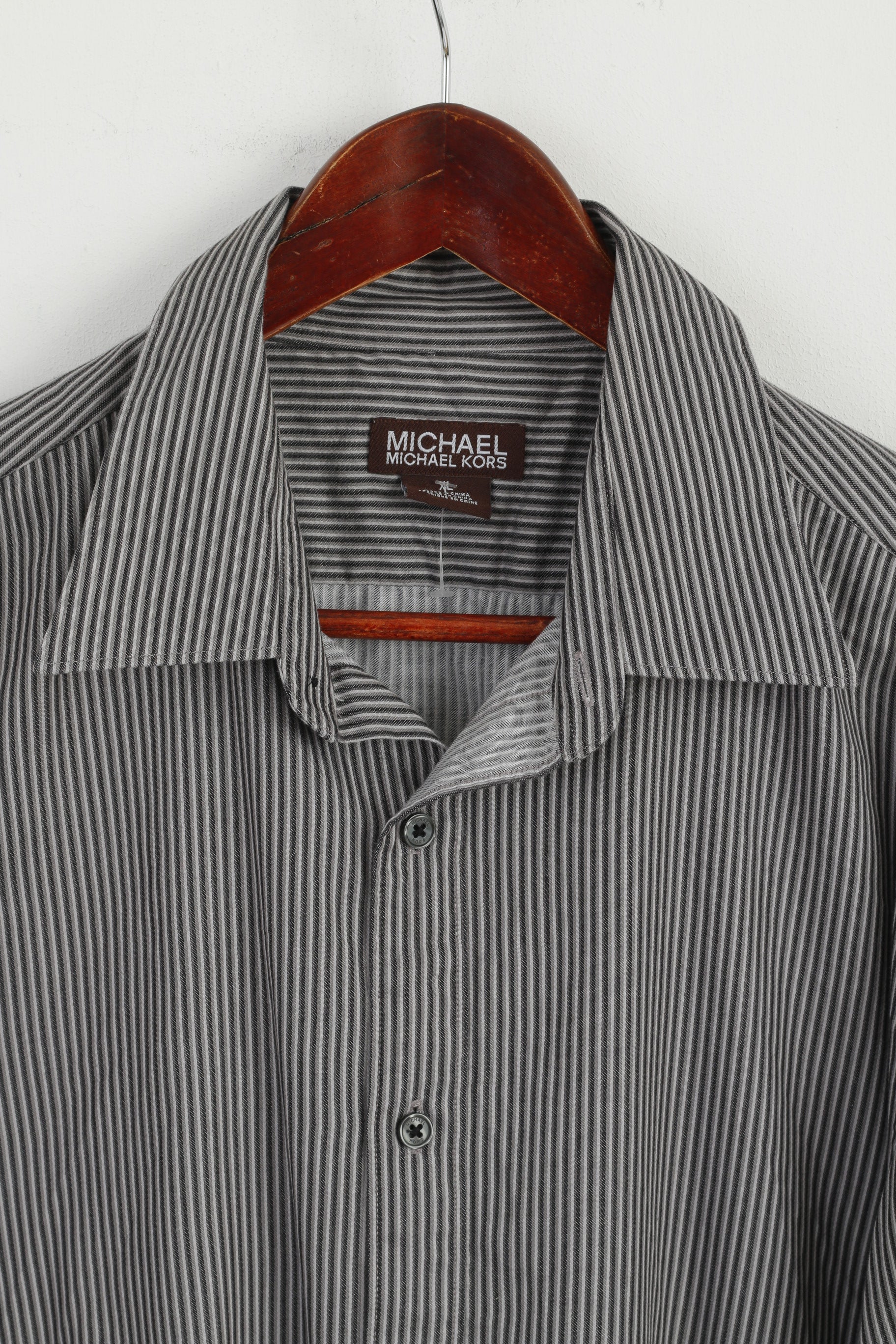 Michael Kors Men XL Casual Shirt Grey Cotton Striped Long Sleeve Detailed Buttons Top