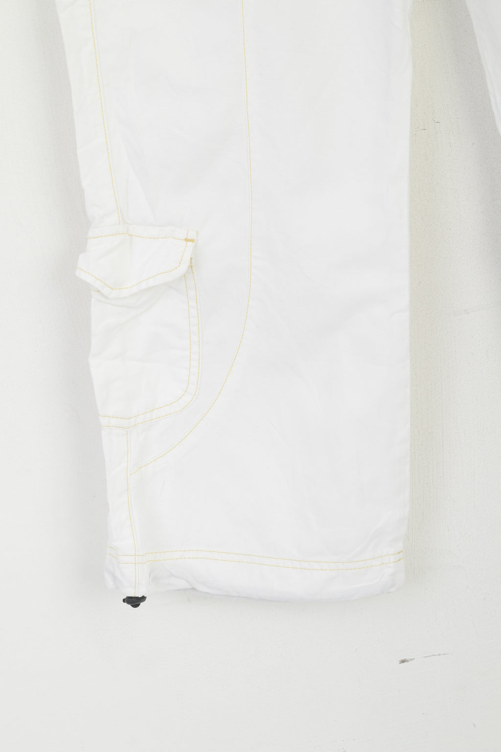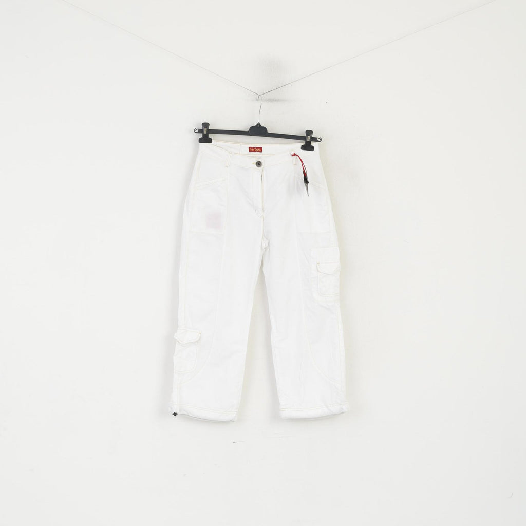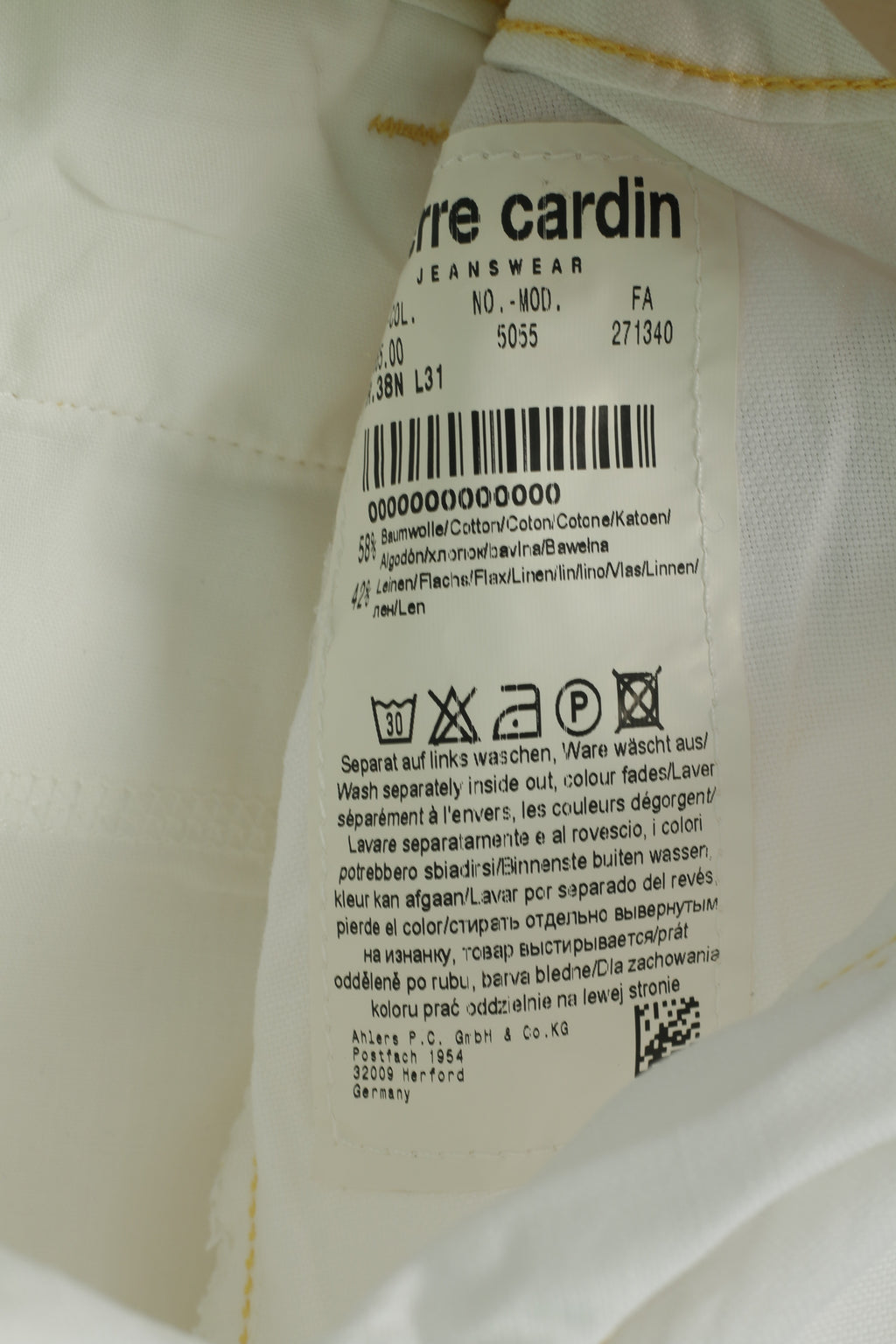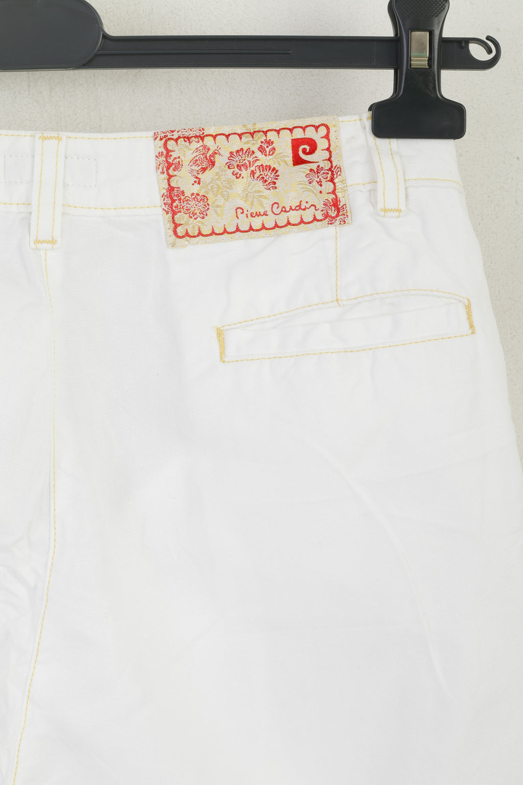 New Pierre Cardin Women 38 M Capri Trousers White Cinfy Cotton Linen Cropped Pants