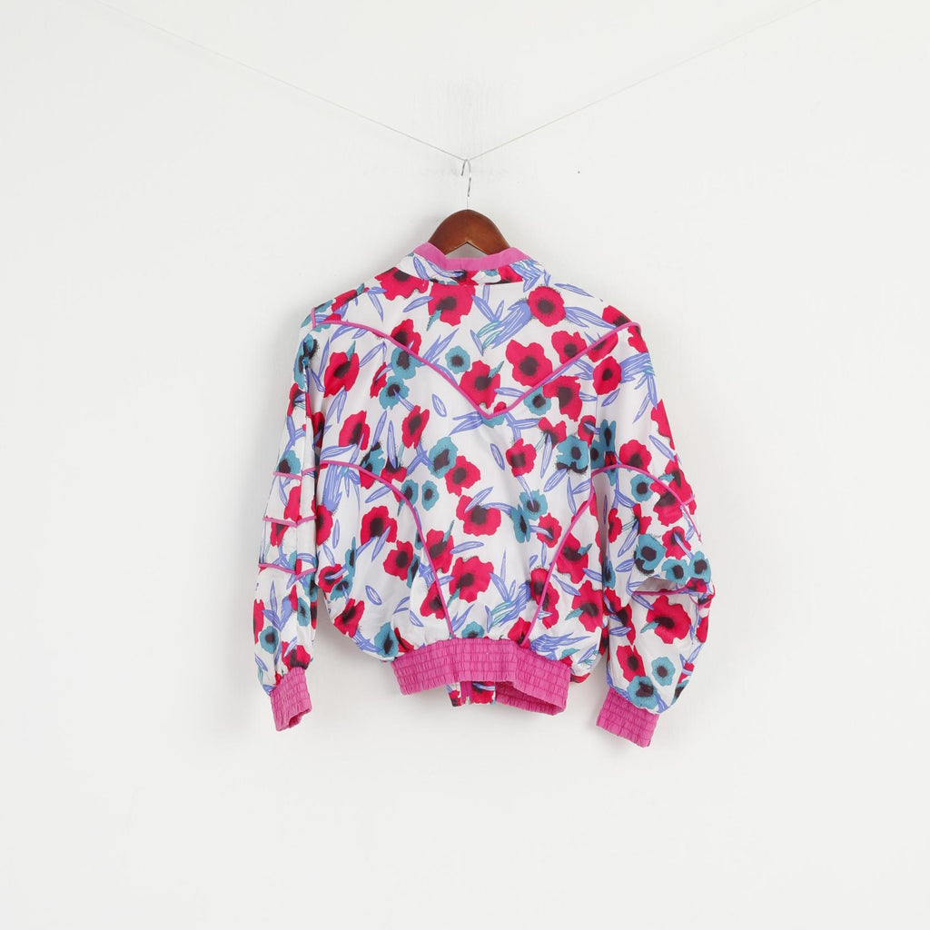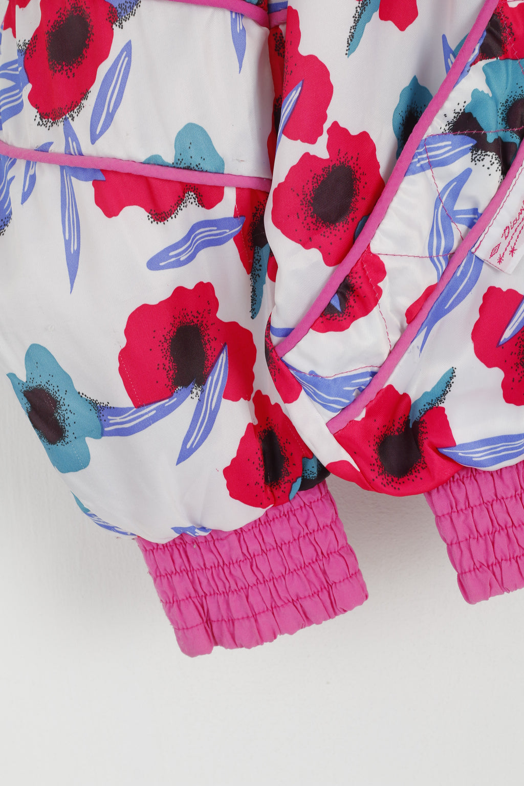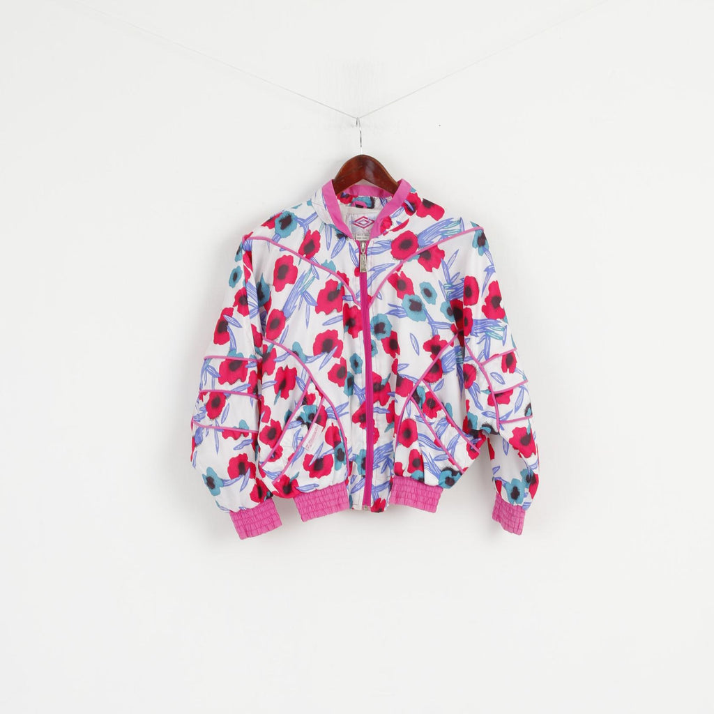 Diamond Cut By Umbro Girls 156 Jacket Pink Floral Bomber Zip Up Shpulder Pads Retro Top