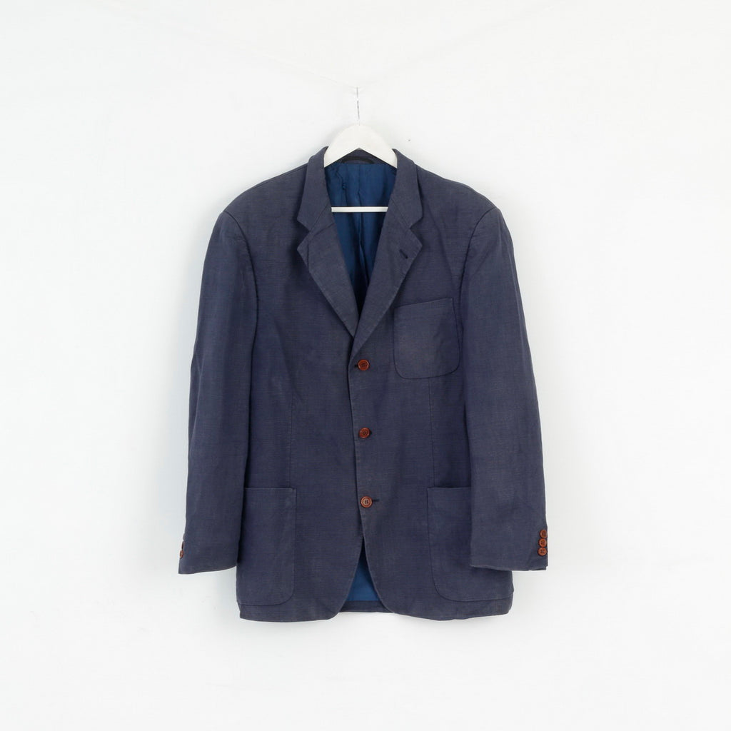 Atelier Torino By Konen Munchen Mens 54 Blazer Navy Vintage 100% Linen Robert Old Jacket