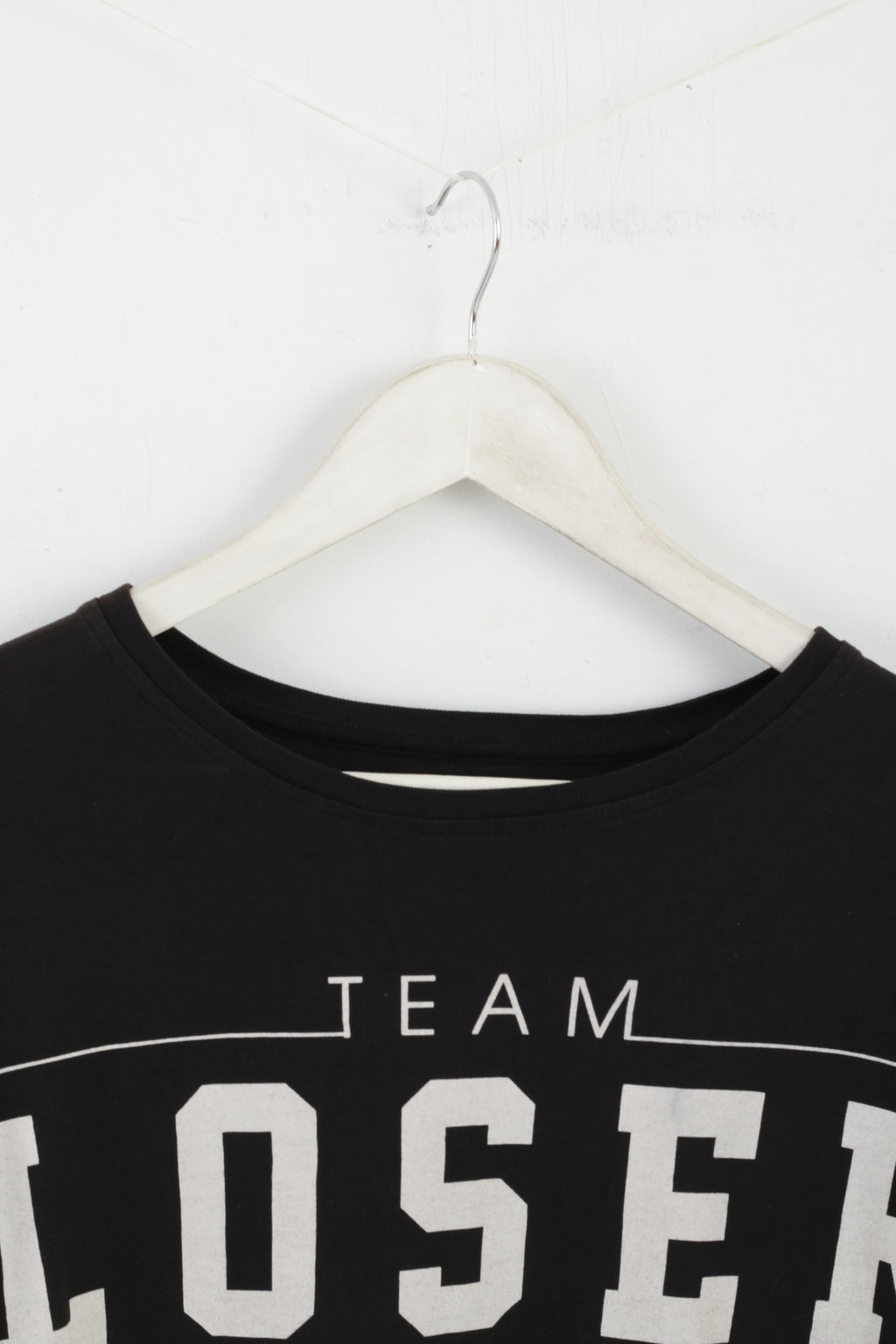 Criminal Damage Men S T-Shirt Black Cotton Mesh Sleeve Team Loser Top