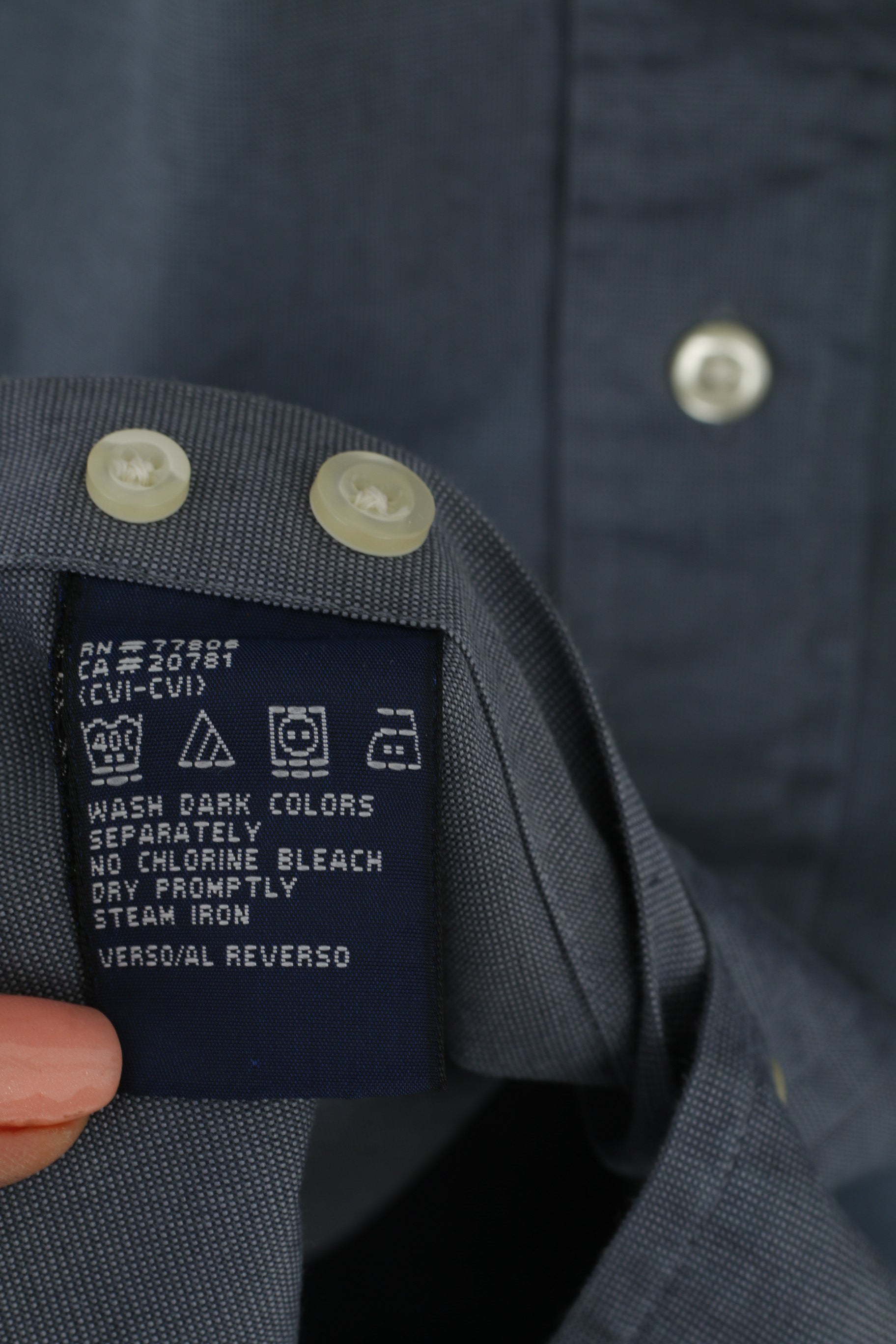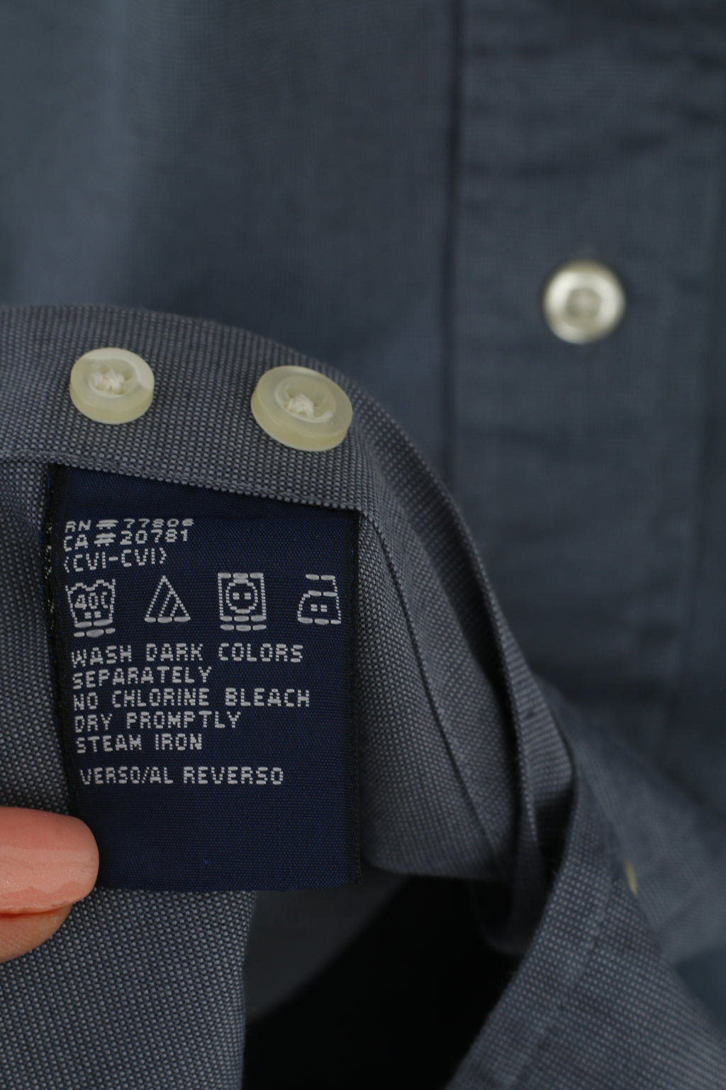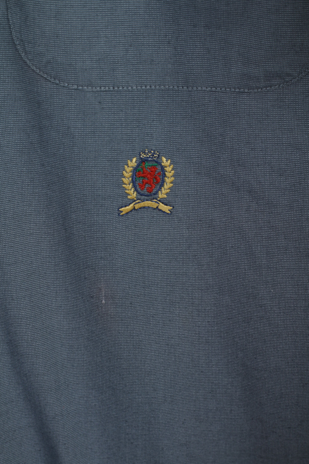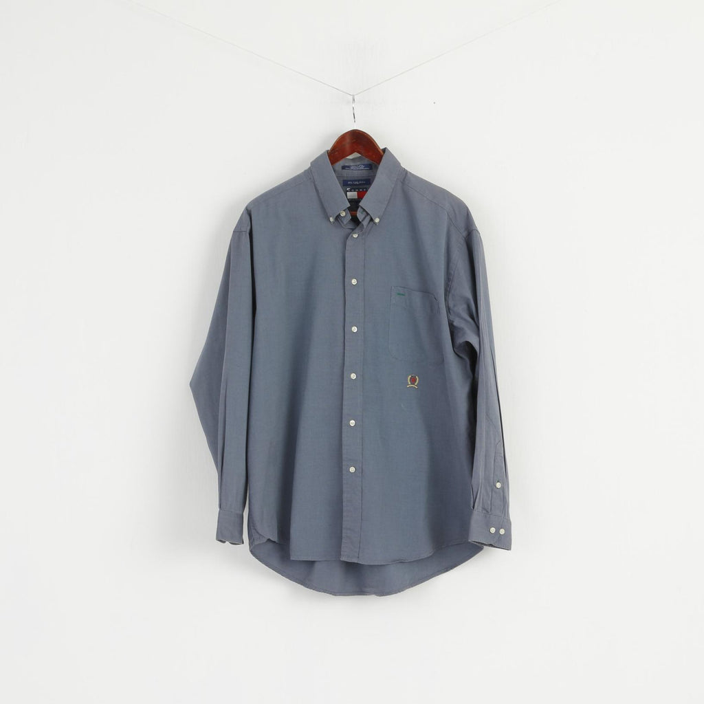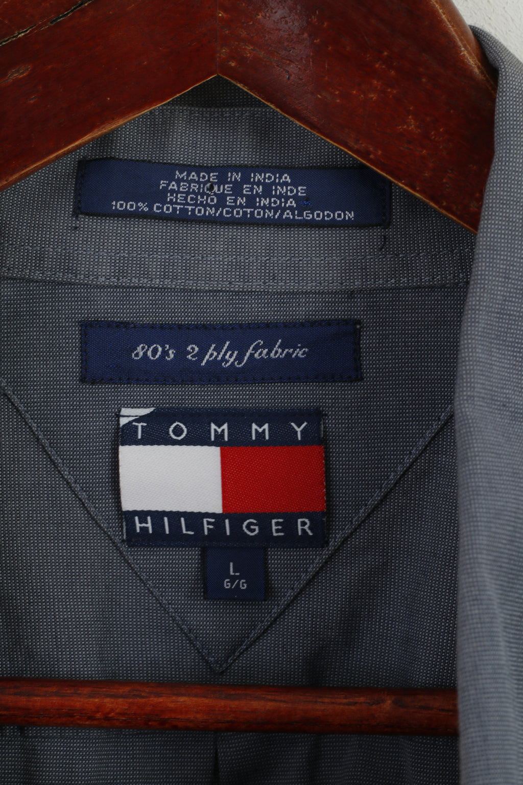 Tommy Hilfiger Men L Casual Shirt Blue 80's 2 ply Cotton Long Sleeve Classic Top