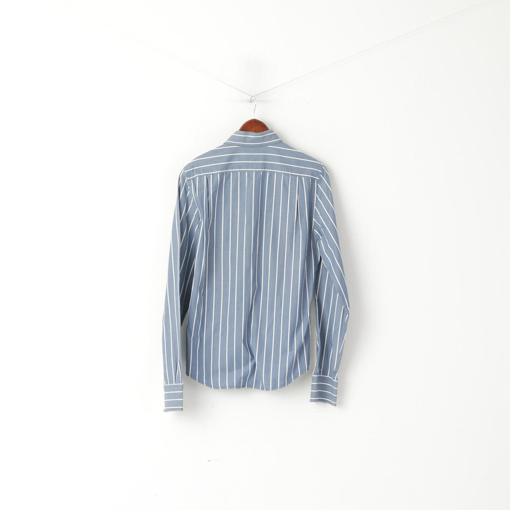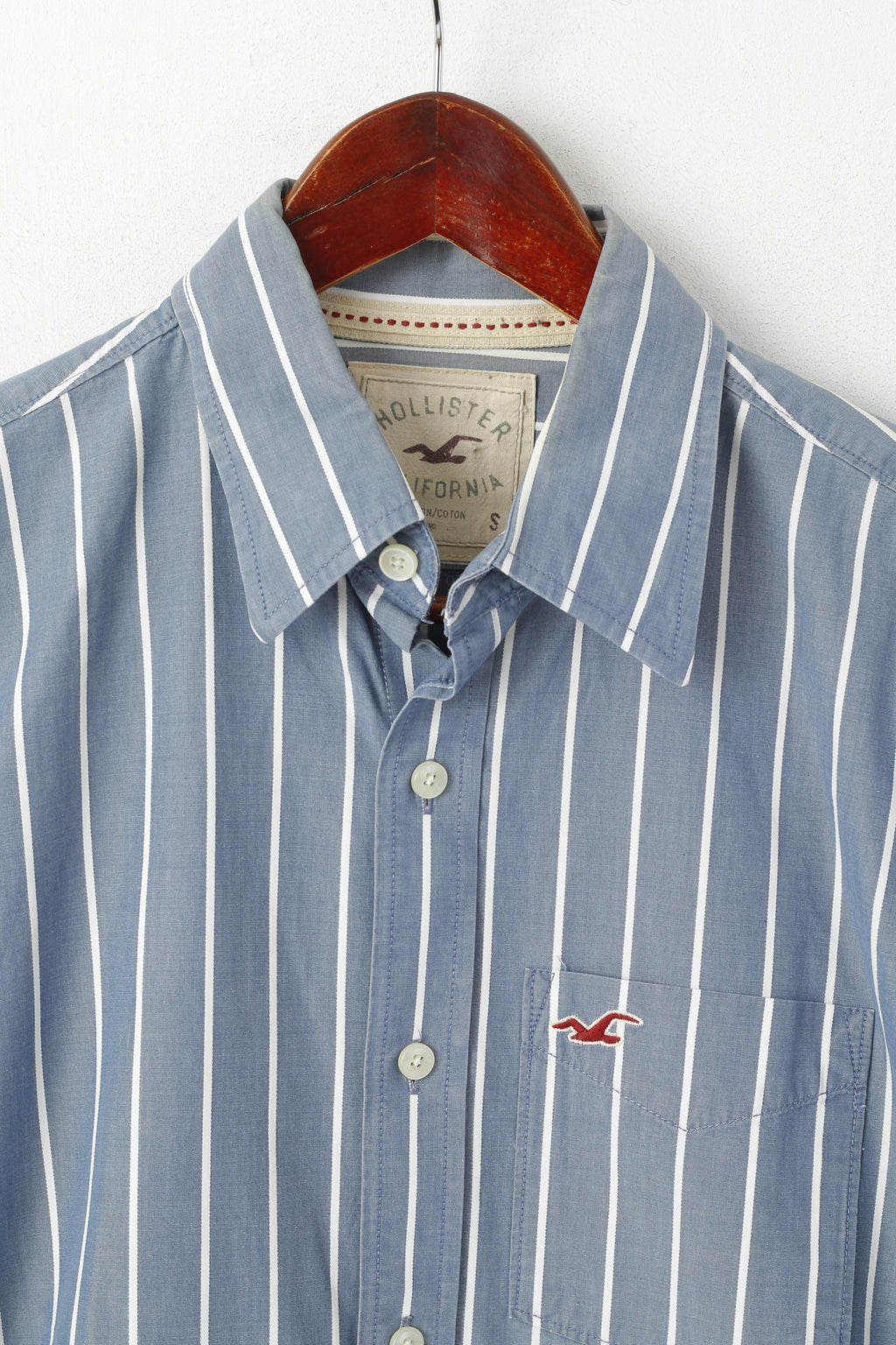 Hollister California Men S Casual Shirt Blue Striped Cotton Long Sleeve Top
