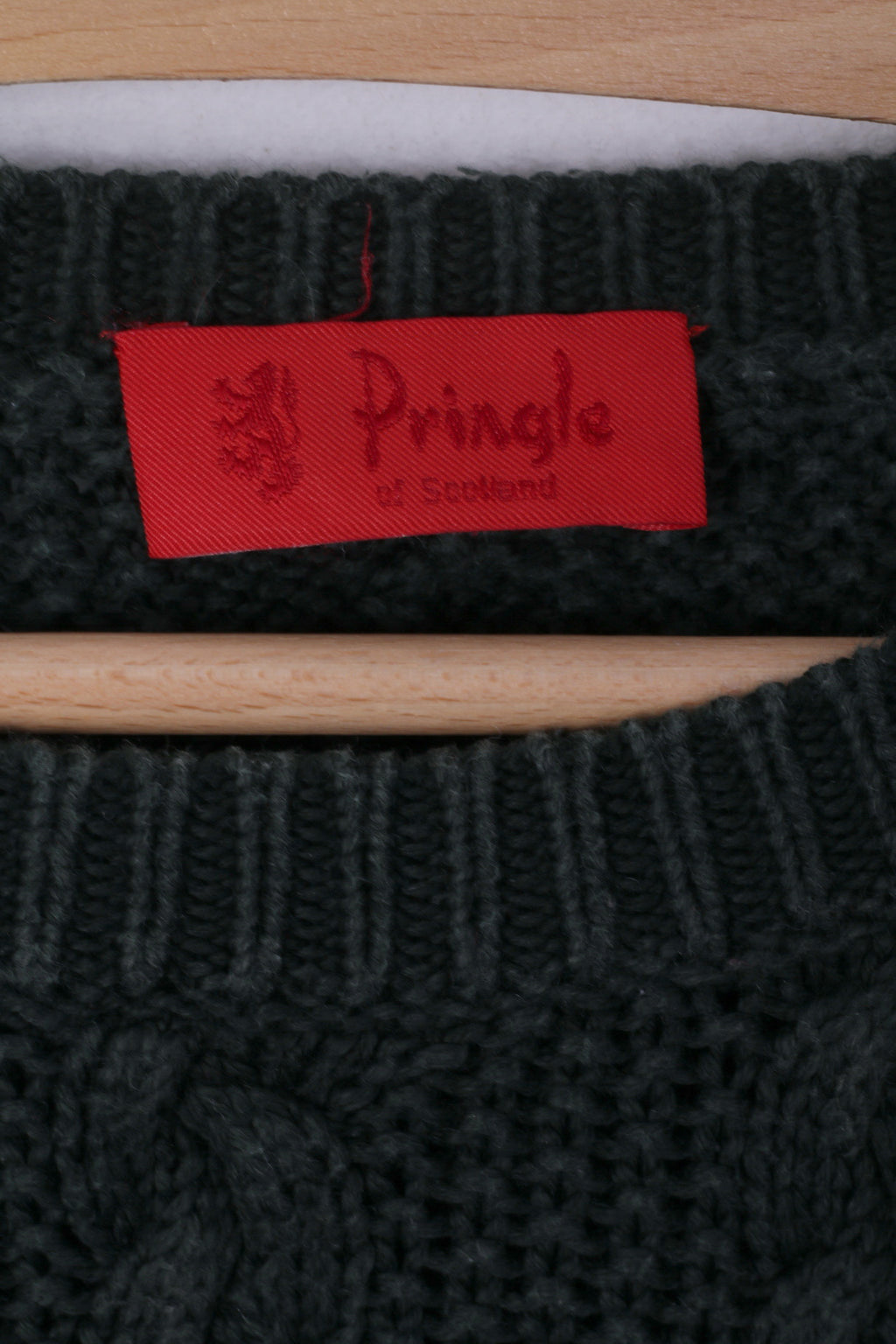 Pringle Of Scotland Womens S Jumper Green Cotton Knitted Sweater Top