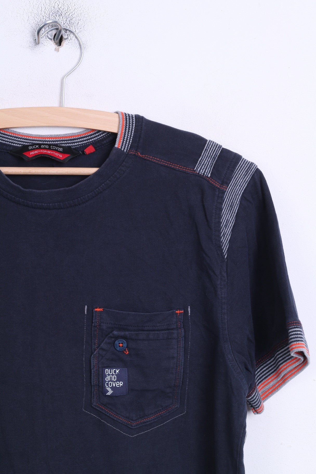 Duck and Cover Mens M Shirt Navy Cotton Crew Neck Ready for Antyhing