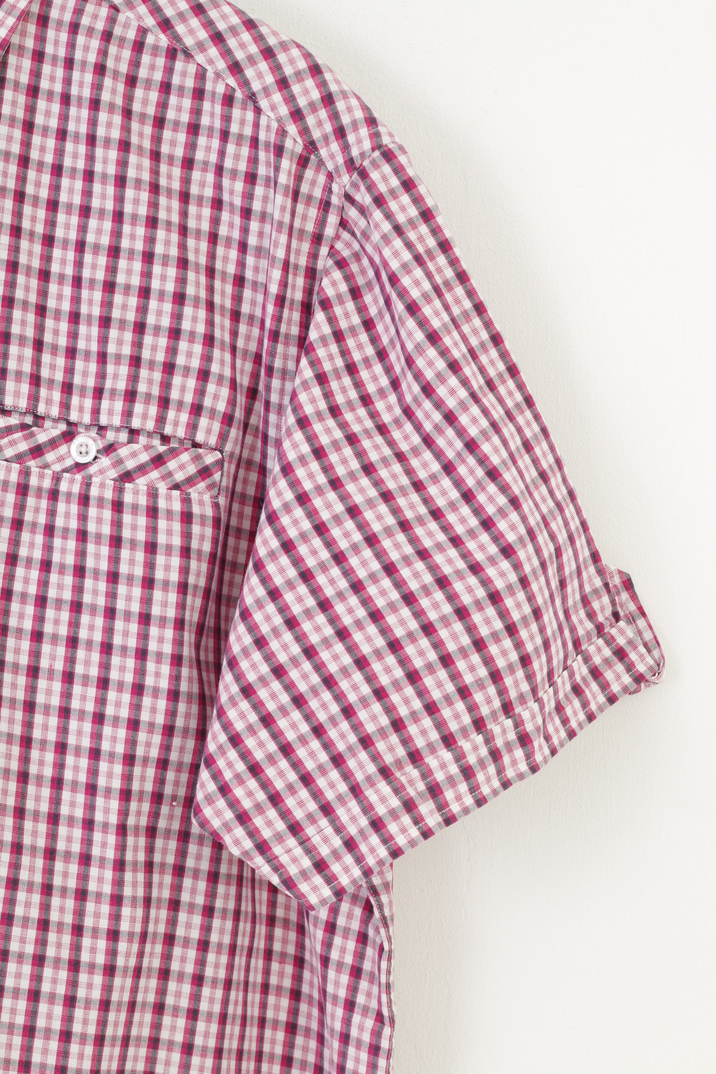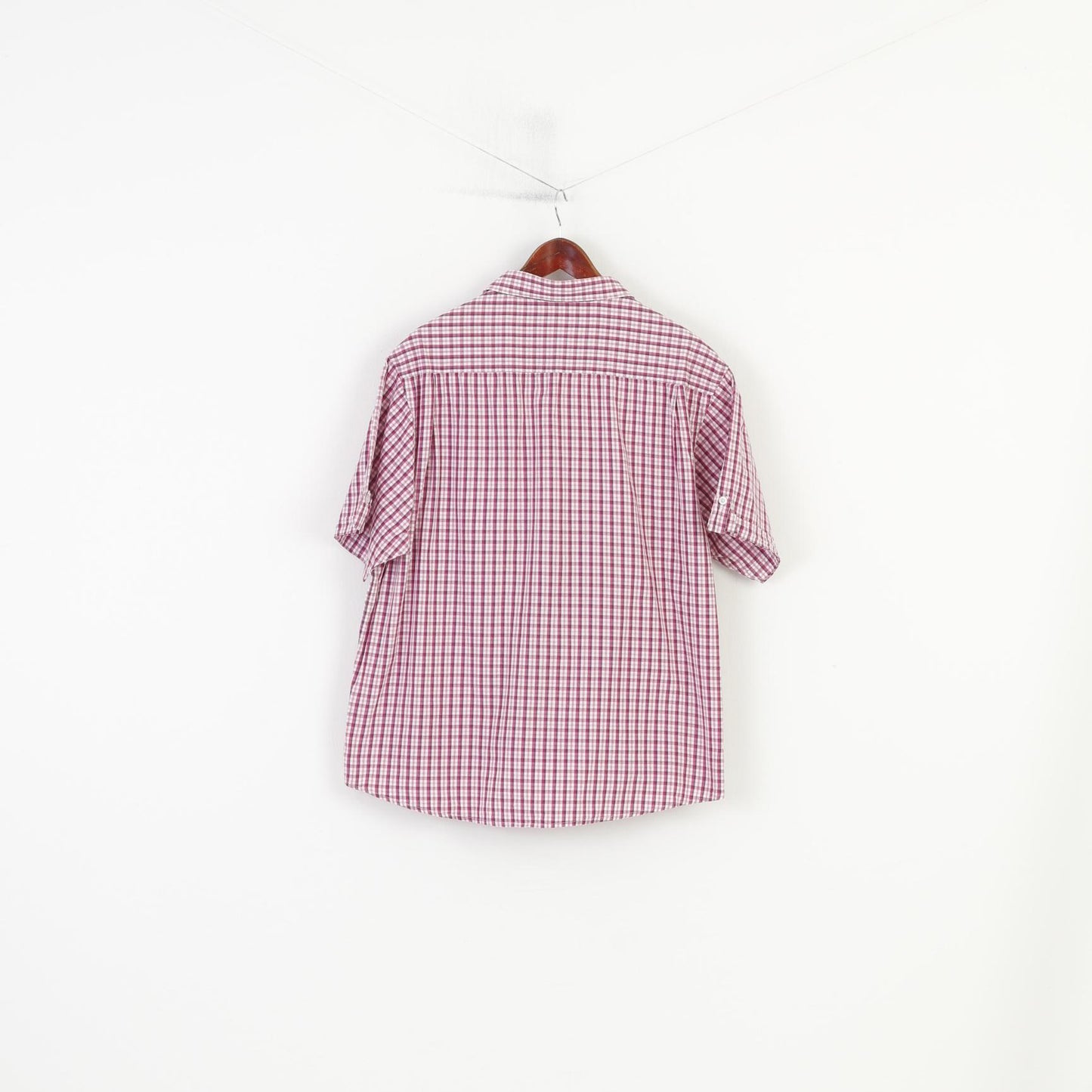 James Pringle Men XL Casual Shirt White Short Sleeve Checkered Vintage Cotton Top