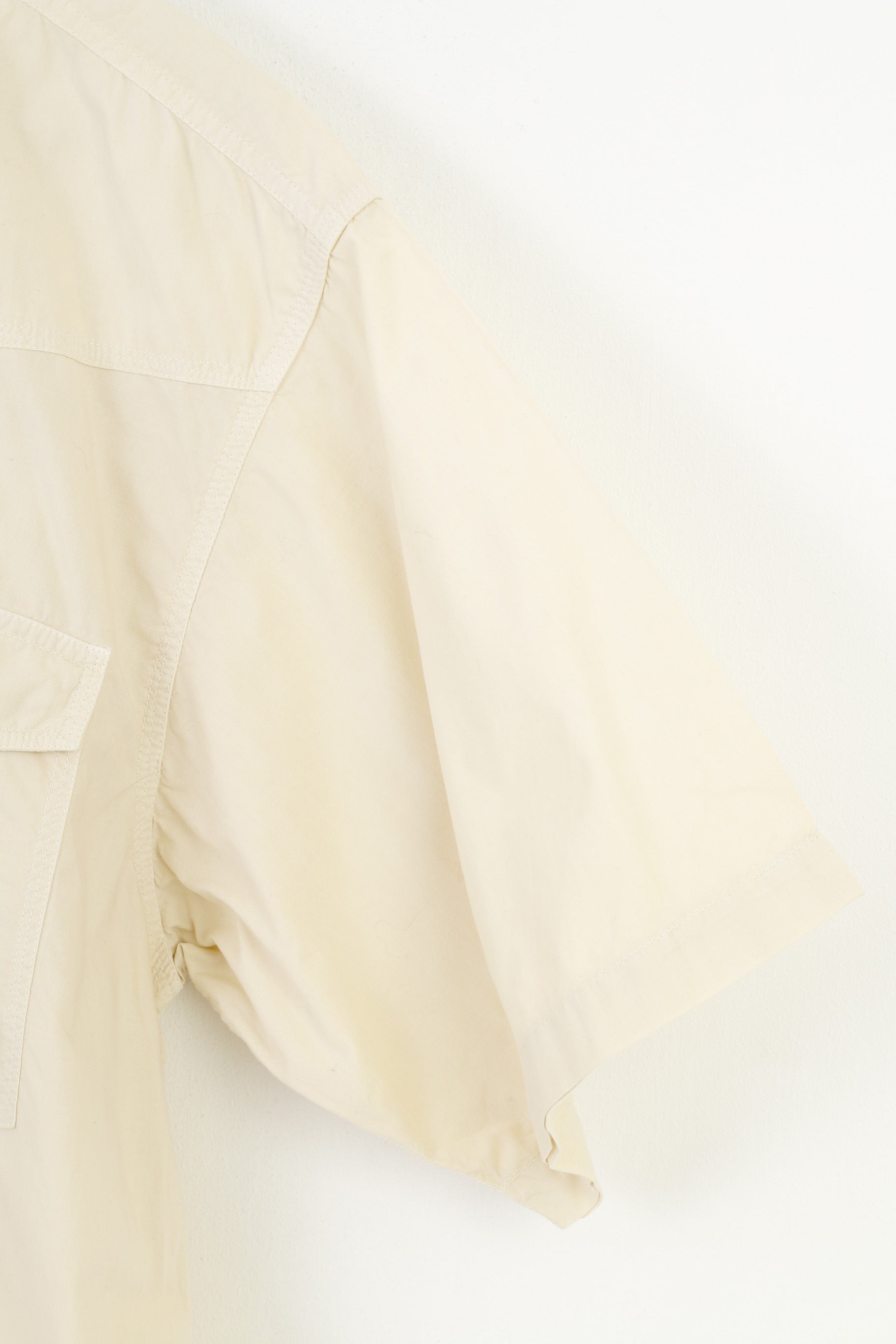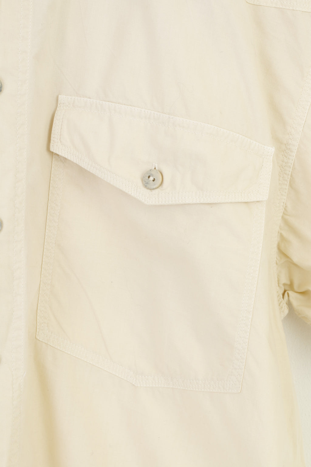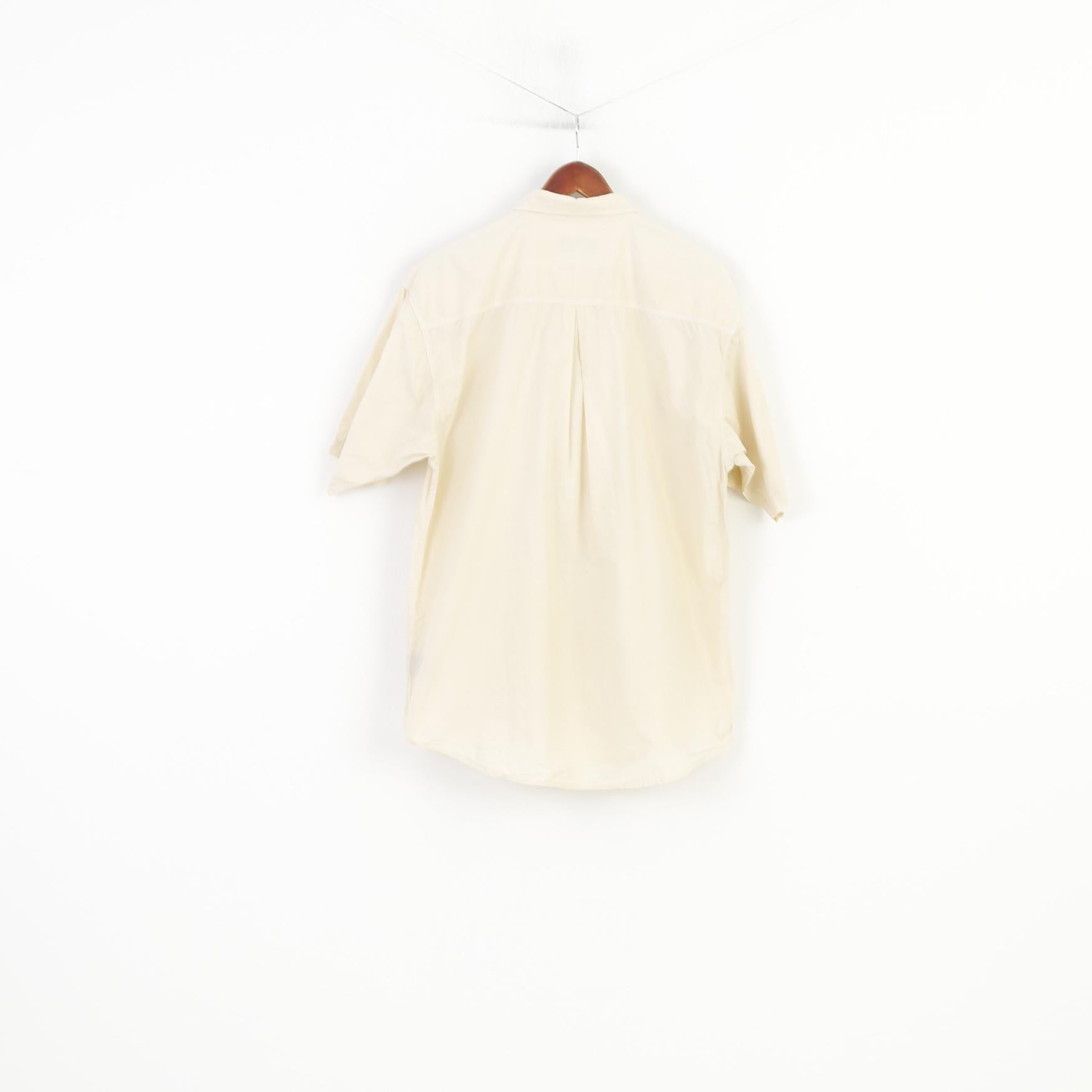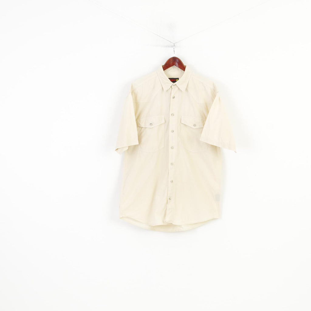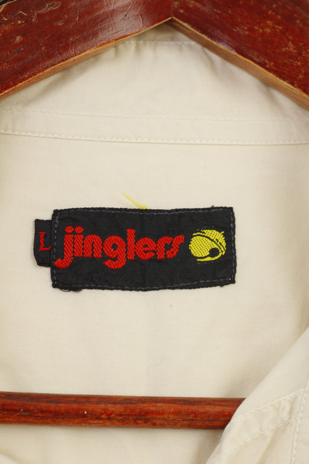 Jinglers Men L Casual Shirt Beige Cotton Short Sleeve Pockets Bottoms Collar Vintage Top