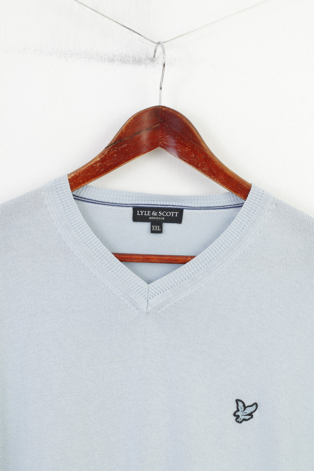 Lyle & Scott Men XXL Jumper Casual Blue Cotton V Neck Light Sweater Heritage Vintage Top
