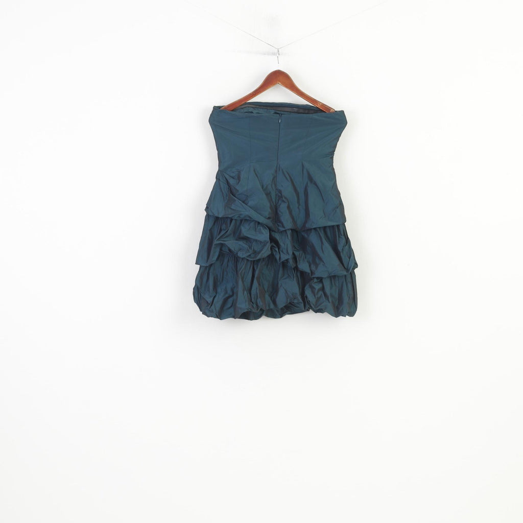 Marie Blanc Women 12 M Mini Dress Bandeau Sea Green Shiny Ruffles Elegant Party Summer Vintage