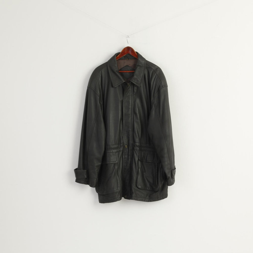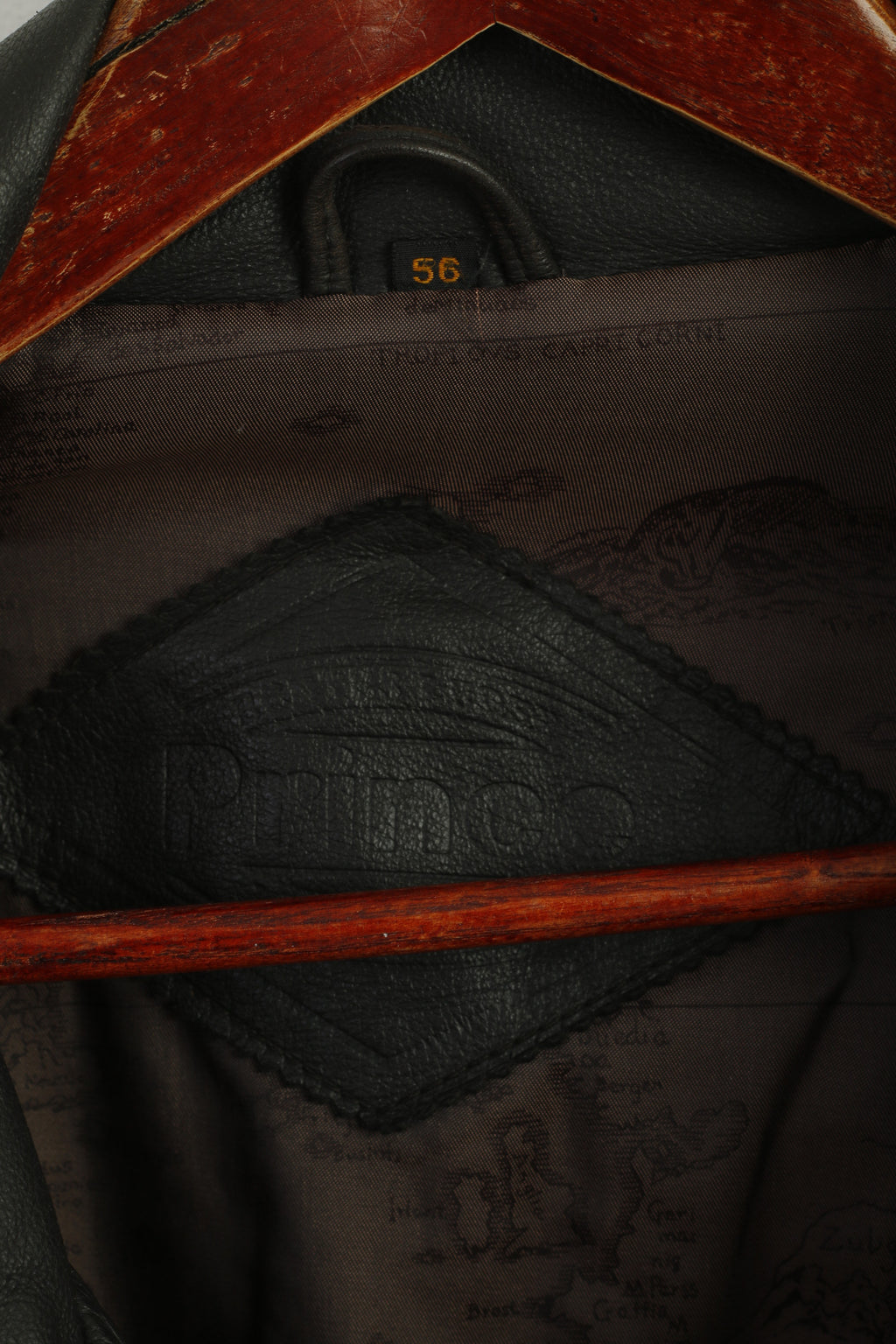 Prince Men 56 XL Leather Jacket Vintage Brown Long Shoulder Pads Classic Heavy Top