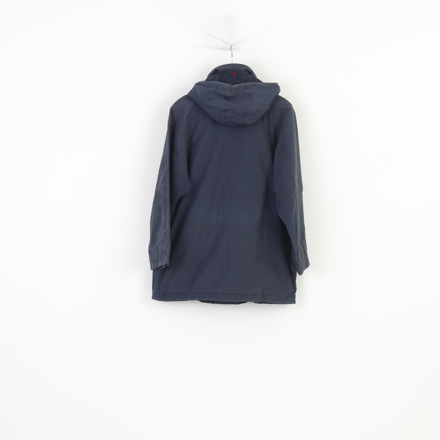 Red Green Men S Jacket Navy Cotton Nylon Blend Duffle Hooded Outdoor Vintage Pockets Top