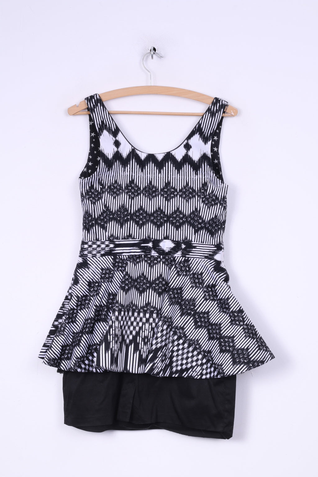 River Island Womens 12 38 S Dress Mini Pencil Peplum Black White Sleeveless Cotton
