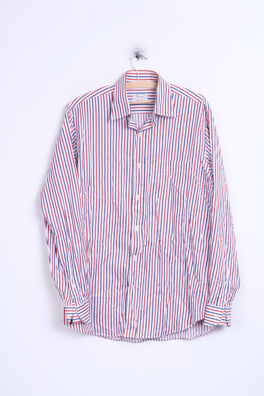 STORM Mens L Casual Shirt Striped White Cotton Button Down Collar