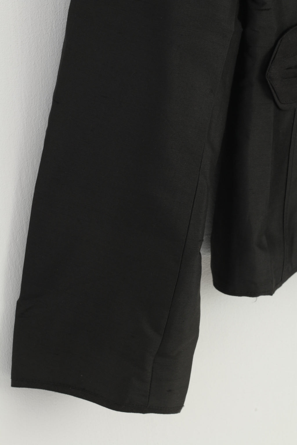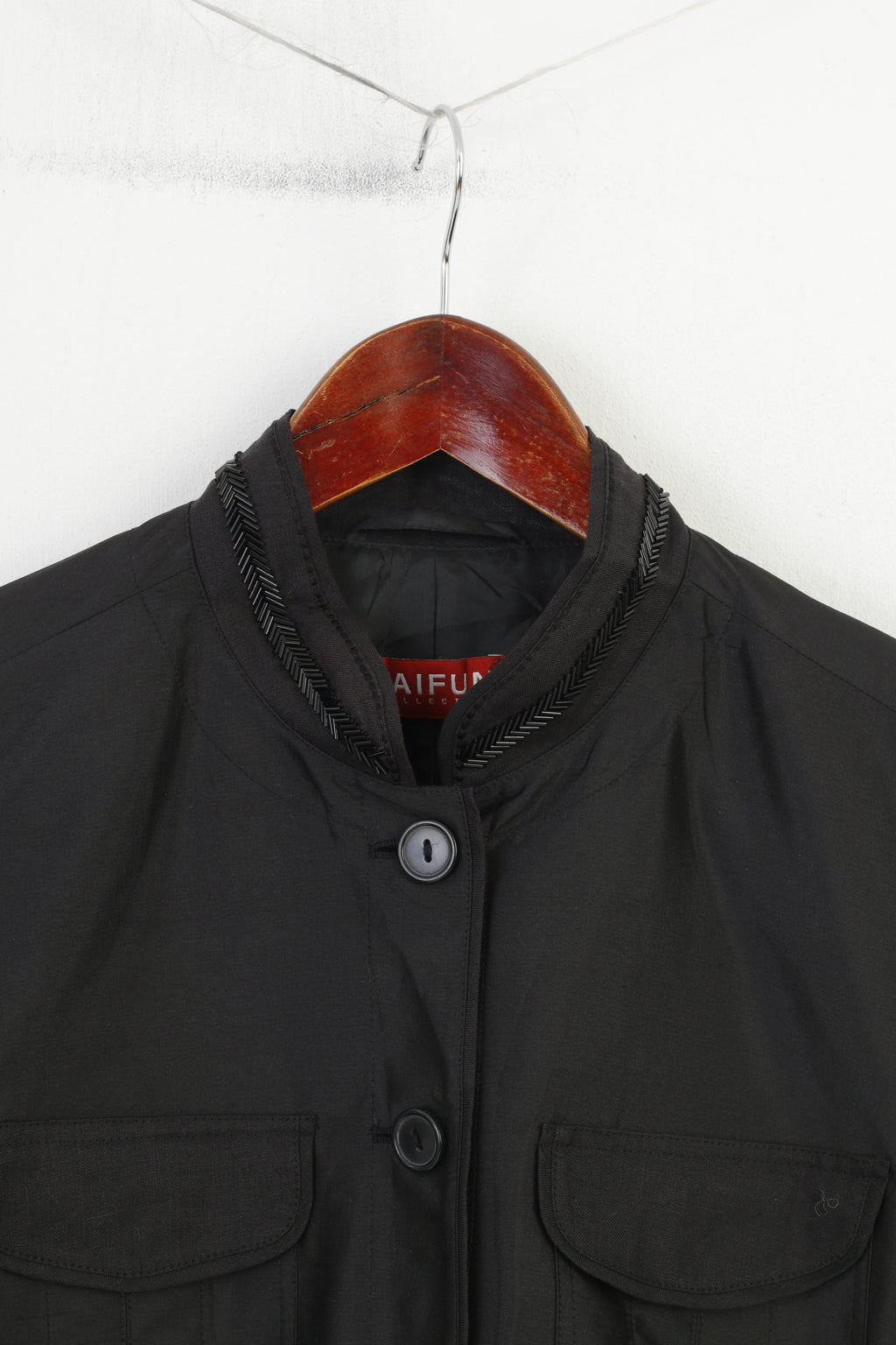 Taifun Collection Women 40 M Silk Blazer Black Single Breasted Shiny Shoulder Pads Pocket Jacket