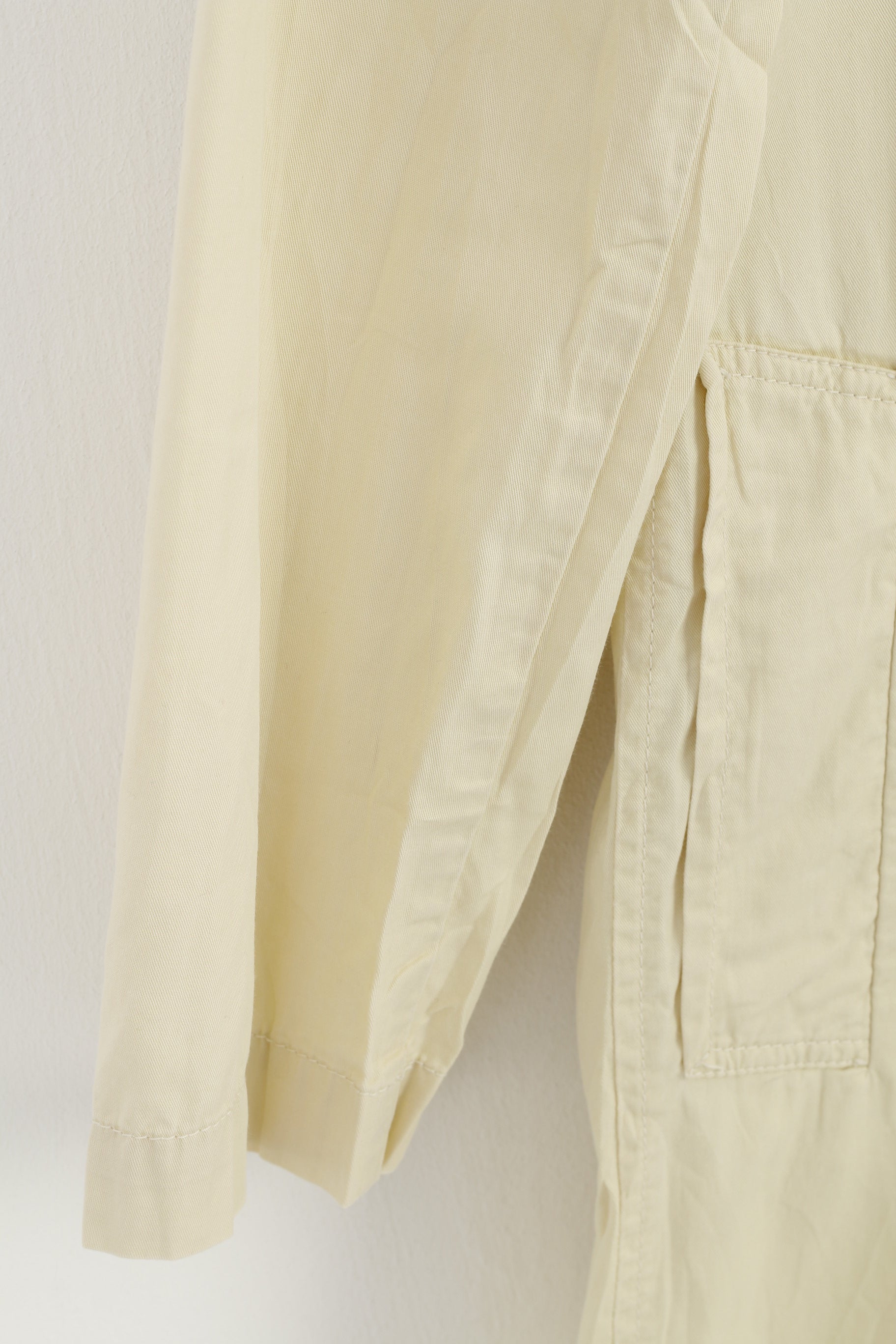 United Colors Of Benetton Women 44 L Coat Beige Cotton Lightweight Double Breasted Collar Outwear Top